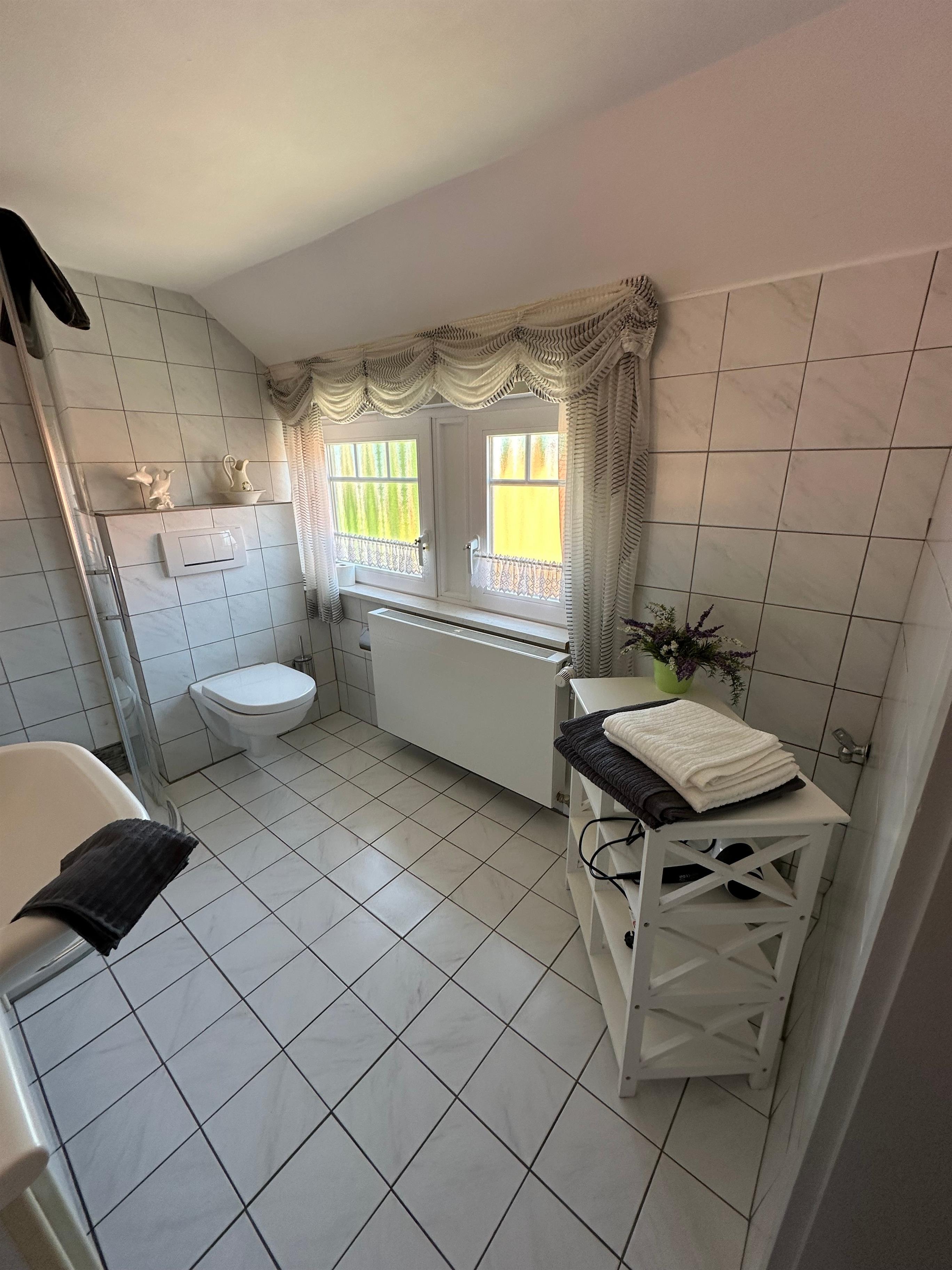 Eine Wohlfühl-Ferienwohnung für drei Personen in der 1. Etage erwartet Sie. Fühlen Sie sich in dieser freundlich und modern eingerichteten Wohnung wie Zuhause und genießen Sie Ihren Urlaub vom ersten Moment an. Die voll ausgestattete Ferienwohnung besticht mit viel Liebe zum Detail, da fällt das Entspannen nicht schwer. Die nach Westen ausgerichtete großzügige Dachterasse lädt ein, die Seele baumeln und den Blick in die Ferne schweifen zu lassen.