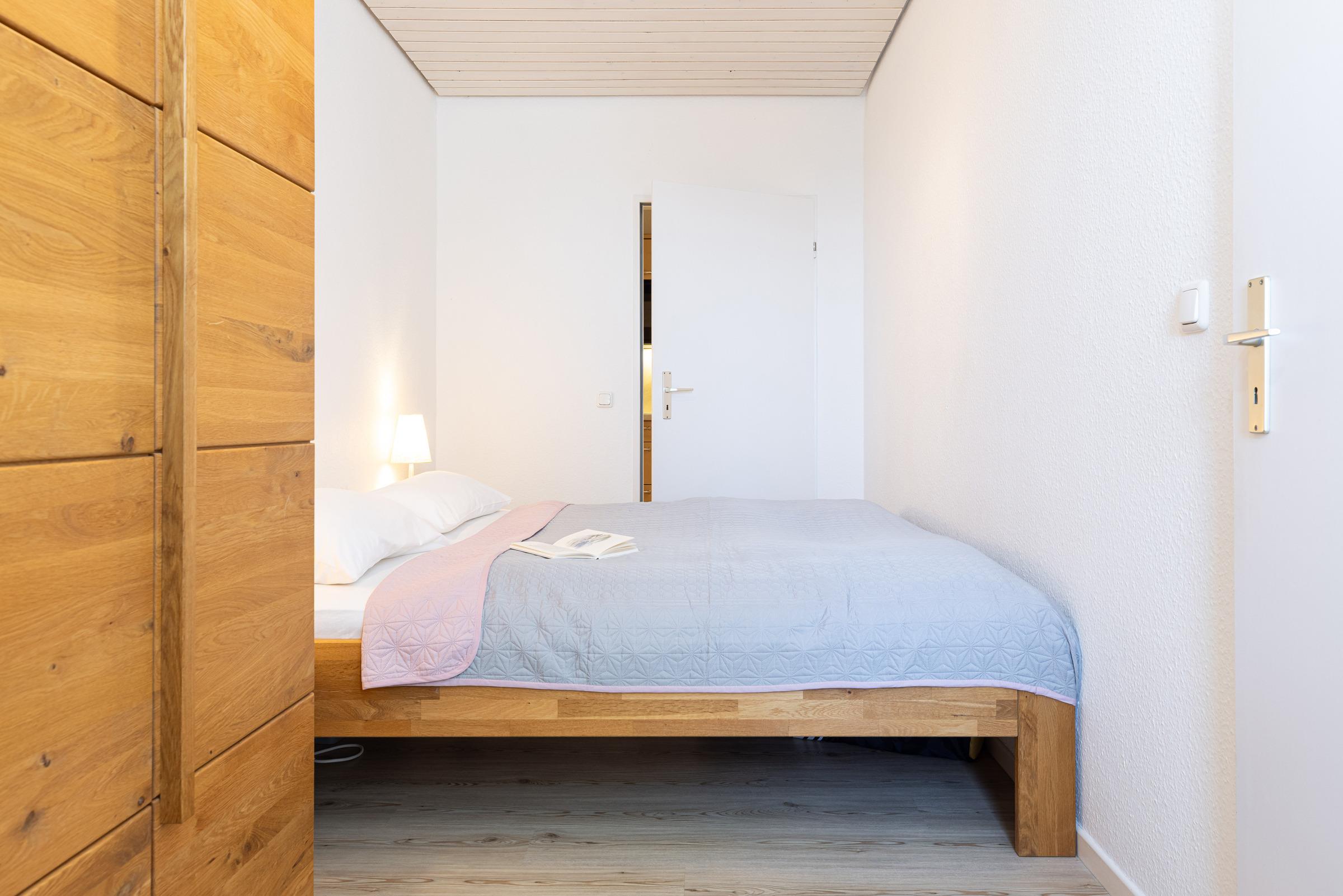 Herzlich willkommen im Urlaub! Das Wohnzimmer mit großer Fensterfront und möbliertem Südbalkon bilden die Highlights dieses Apartments. Genießen Sie den tollen Blick aufs Meer und lassen Sie den Alltag hinter sich. Morgens haben Sie die Möglichkeit, gemütlich zu frühstücken und dabei die Kutter und Segelboote zu beobachten, die langsam die Hafeneinfahrt aus- und einfahren – das ist Entschleunigung pur. Im Wohnzimmer befindet sich zudem der Essbereich. Zum Fenster hin lädt die gemütliche Sitzgruppe mit Schlafsofa zum Entspannen, Lesen und Fernsehen ein. Das Schlafsofa lässt sich zu einem vollwertigen Doppelbett ausziehen. Die gut ausgestattete Küche mit Geschirrspüler und weiteren Extras ist ideal, um Ihre Lieblingsspeisen zuzubereiten. Das Schlafzimmer ist möbliert mit einem Doppelbett und einem großen Kleiderschrank. Das Duschbad hat eine Fußbodenheizung und einen Handtuchwärmer.