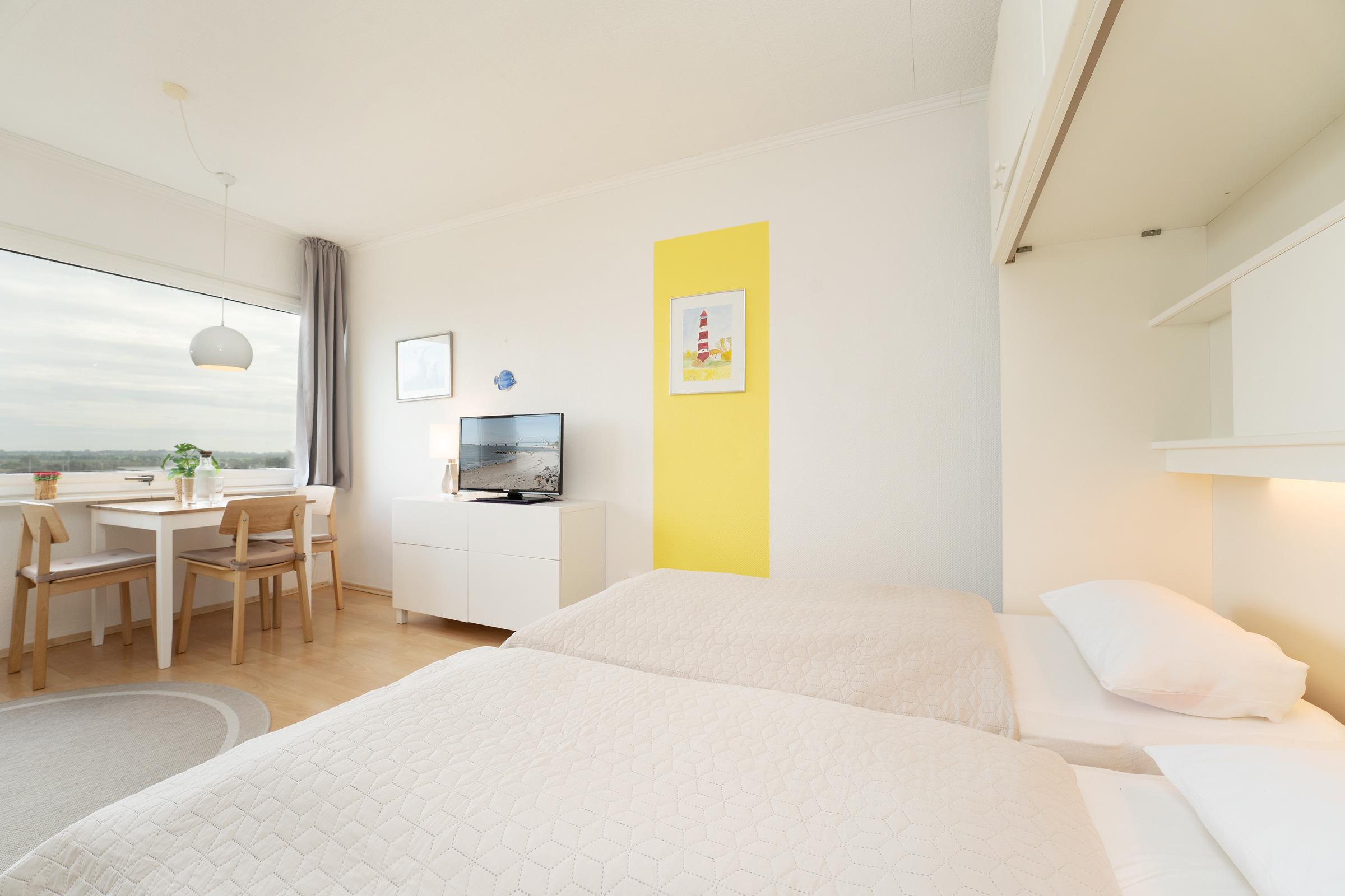 Moderne 1-Zimmer-Ferienwohnung mit Meerblick am Südstrand von Fehmarn, ideal für entspannte Tage am Strand.