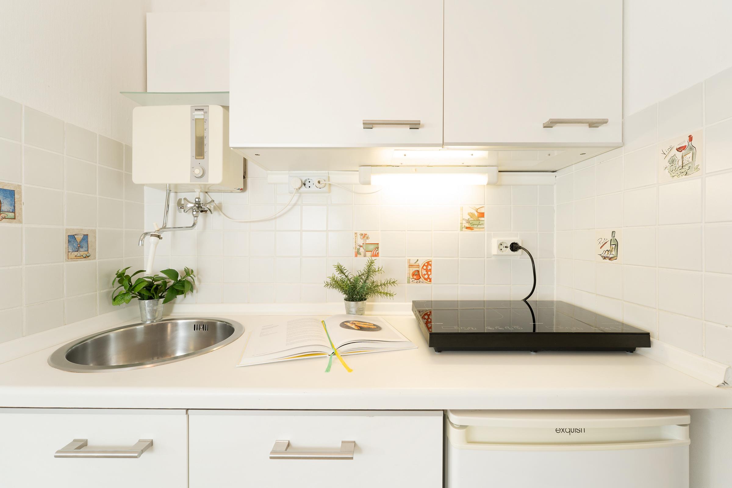 Das helle Apartment empfängt Sie mit einem gemütlichen Wohn- und Schlafbereich, der mit einem bequemen Schrankbett, einem Schlafsofa und einer Sitzecke ausgestattet ist. Sonnige Stunden lassen sich am besten im dazugehörigen Strandkorb am Südstrand genießen. In der kompakten Küche finden Sie alles, was Sie für die Selbstversorgung benötigen: ein Kochfeld, Kühlschrank mit Gefrierfach, Kaffeemaschine, Wasserkocher und Toaster machen die Zubereitung Ihrer Mahlzeiten komfortabel. Der angrenzende Essbereich lädt zum gemeinsamen Genießen ein. Das Badezimmer verfügt über Dusche, WC und beheizbarem Handtuchhalter.