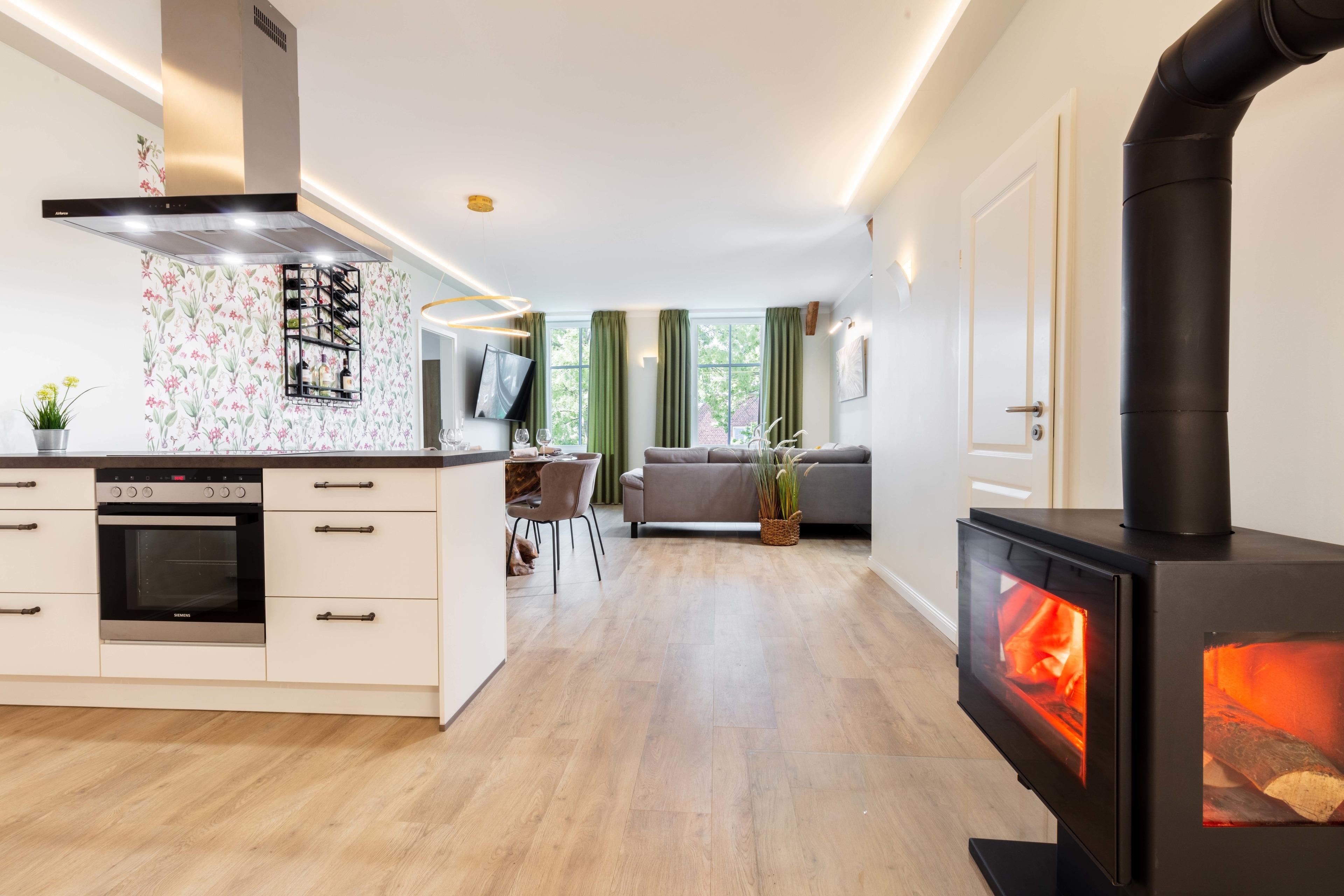 Luxuriöse Ferienwohnung Casa Florale auf Fehmarn mit Sauna, Kamin und idyllischem Garten für erholsamen Landurlaub.