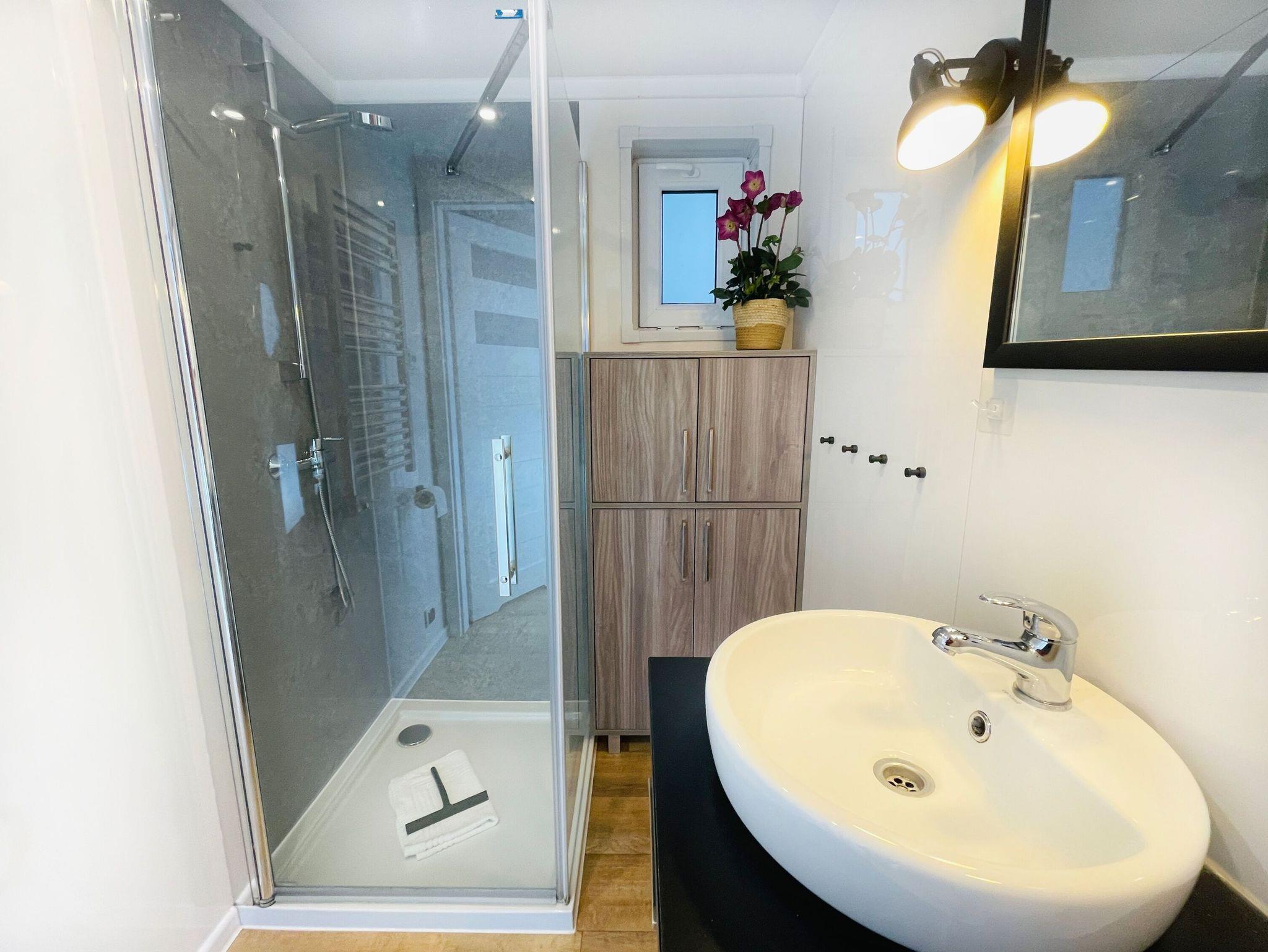 Am Strand des Gutes Teichhof erwartet Sie das Tiny House Humboldt für Ihren entspannten Urlaub am Meer. Dieses charmante Strandhaus hat Platz für bis zu 2 Erwachsene und 2 Kinder und bietet einen atemberaubenden Blick auf das Meer. Genießen Sie die Behaglichkeit eines Doppelbettes im Schlafzimmer sowie des eigenen Badezimmers mit Dusche. Die Wohnküche lädt zu gemeinsamen Kocherlebnissen ein und ist mit modernen Annehmlichkeiten wie einer Filterkaffeemaschine, Mikrowelle und Spülmaschine ausgestattet. An sonnigen Tagen lädt Ihre private 15 m2 große Terrasse im Garten zum Entspannen und Genießen ein. Im Wohnzimmer mit TV, DVD und Musikanlage finden Sie erholsame Stunden der Unterhaltung. Der Strand liegt direkt vor Ihrer Tür und verspricht Momente der Ruhe und Erholung. Überdachte Fahrradabstellmöglichkeiten und Parkplätze für Ihr Auto stehen auf dem Gelände des Gutshofs zur Verfügung. Die einzigartige Lage des Teichhofs ermöglicht es Ihnen, die idyllische Natur zu erkunden, während Sie zugleich von der Nähe zu zwei Restaurants und der nächsten Stadt profitieren, die nur 5 Kilometer entfernt liegt und eine Vielzahl von Einkaufs- und Restaurantmöglichkeiten bietet. Zum Be- und Entladen können Sie gerne direkt am Strandhaus halten. Das Check-in erfolgt bequem eigenständig. Auf dem Gelände des Teichhofes erwartet Sie zudem ein Streichel-Zoo mit Schafen und eine Wiese mit Ponys. Das Tiny House James Cook bietet somit die ideale Kombination aus Ruhe und Erholung sowie der Nähe zu verschiedenen Aktivitäten und Annehmlichkeiten für einen unvergesslichen Urlaub.