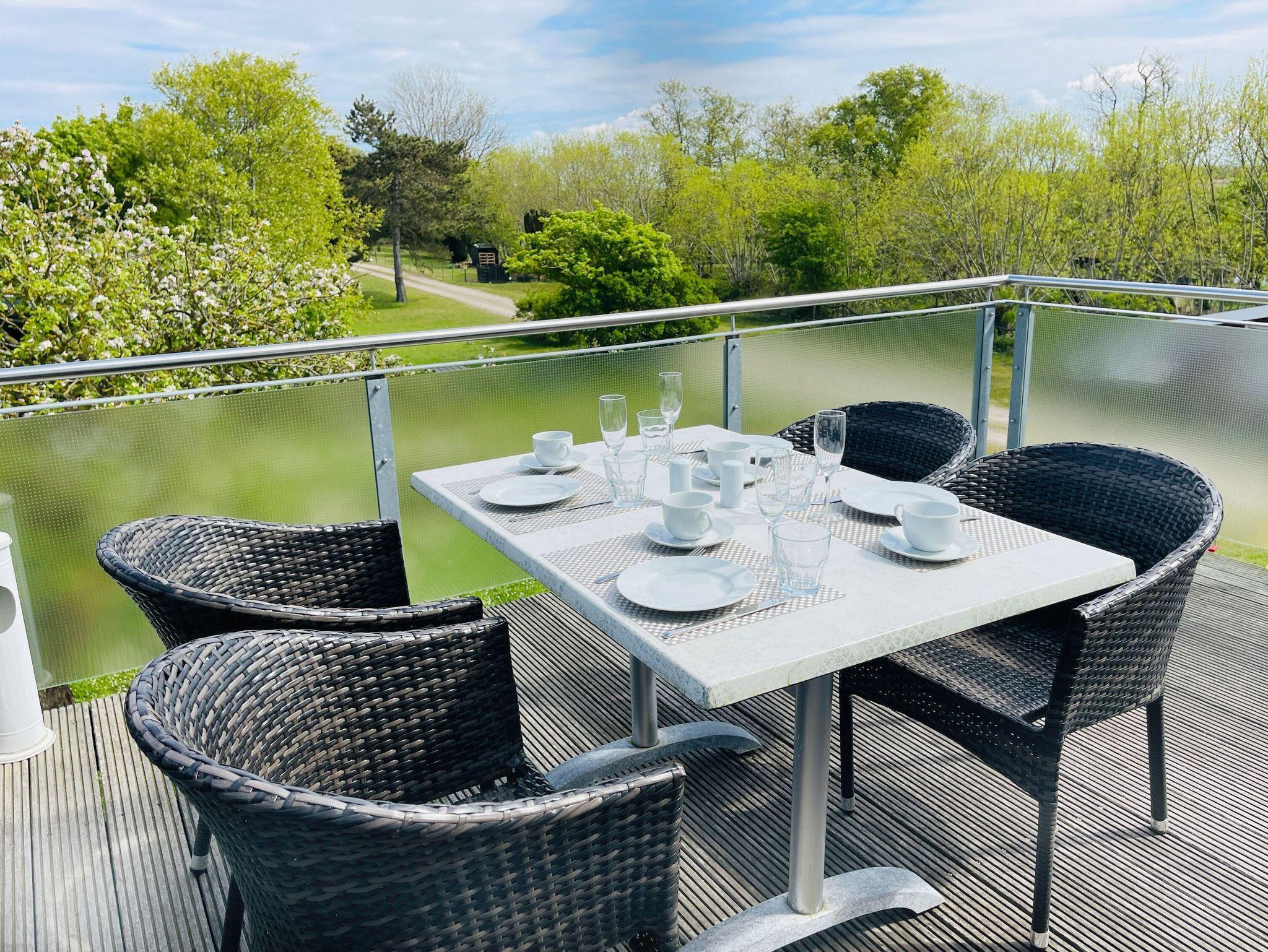 Gemütliches Apartment Passat im Gutshof Teichhof mit Meerblick, Kamin und Balkon direkt am Strand von Fehmarn.