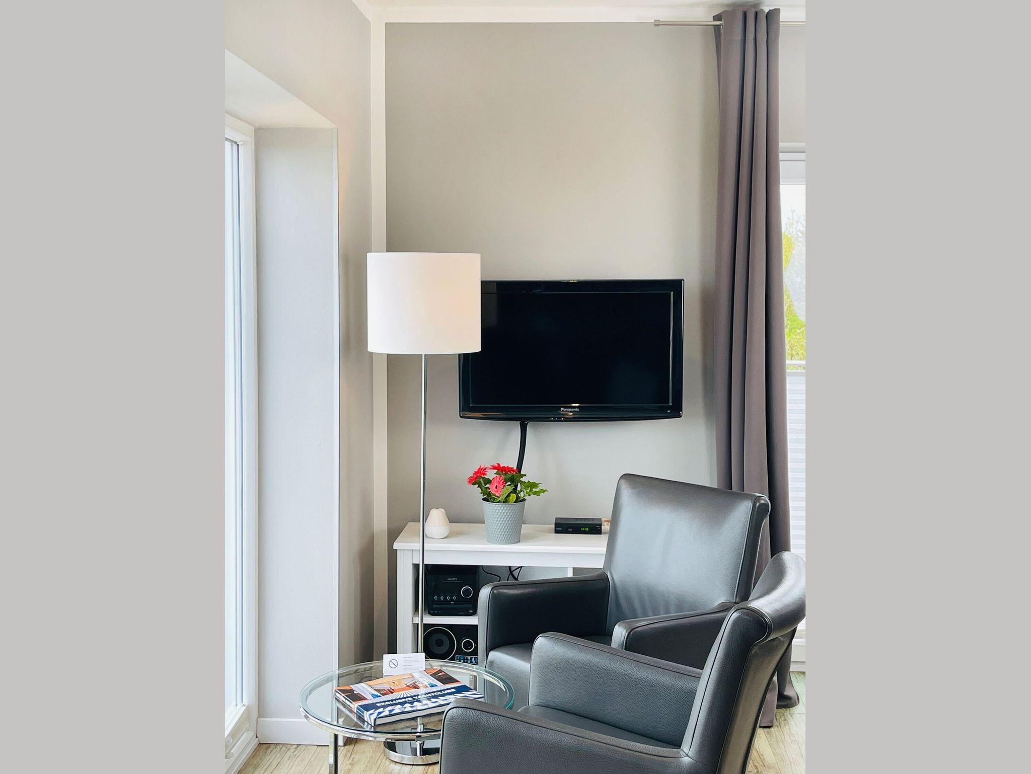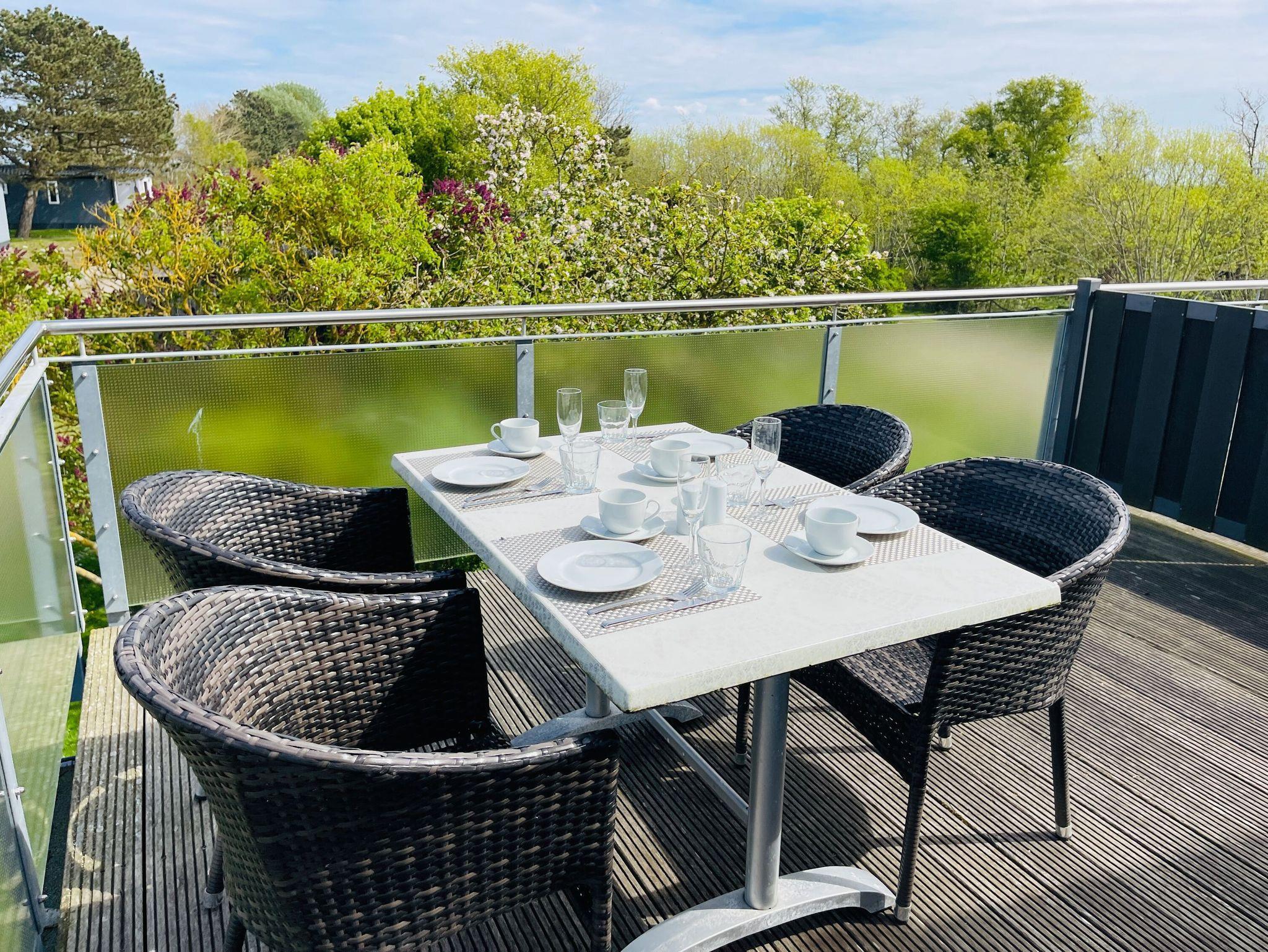 Genießen Sie Meerblick und Ruhe im Apartment Priwall auf dem Gutshof Teichhof, ideal für erholsame Tage zu zweit mit Balkon und Garten.