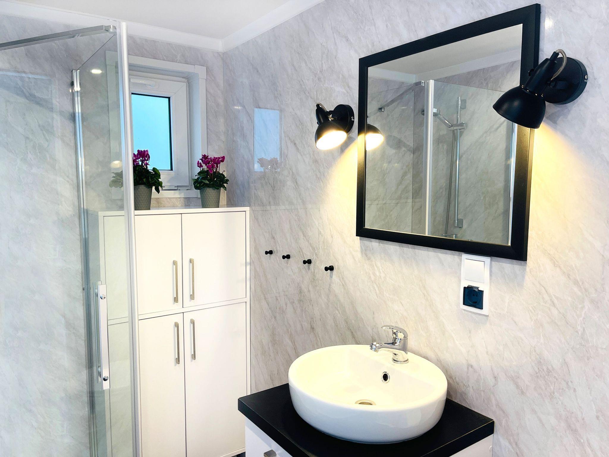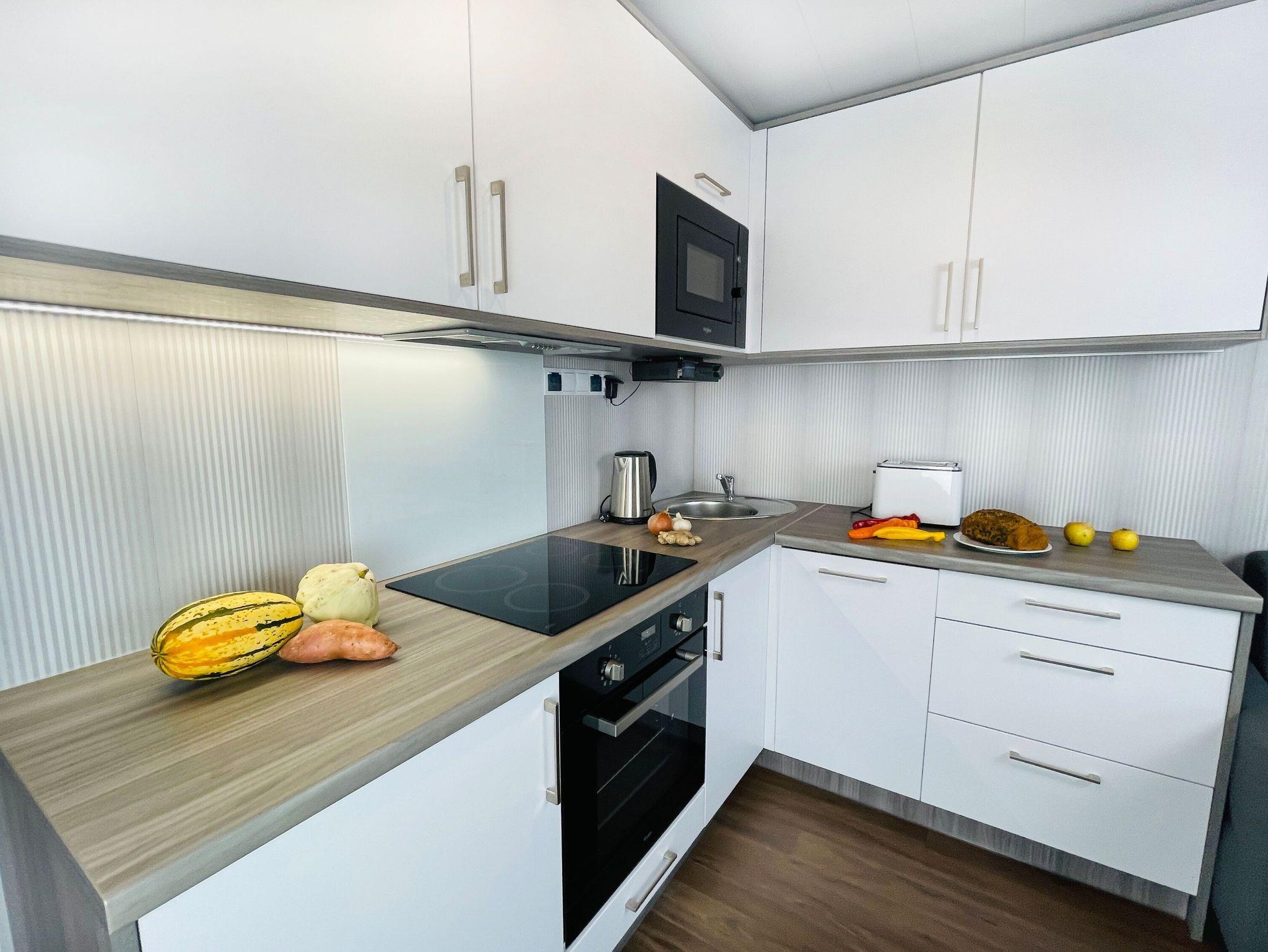 Im Garten des Gutes Teichhof erwartet Sie das Tiny House Jack Rackham für Ihren entspannten Urlaub am Meer. Dieses Strandhaus hat Platz für 2 Erwachsene und 2 Kinder und bietet einen atemberaubenden Blick auf das Meer. Genießen Sie die Behaglichkeit eines Doppelbettes im Schlafzimmer sowie das eigene Badezimmer mit Dusche. Die Wohnküche ist mit modernen Annehmlichkeiten wie Filterkaffeemaschine, Mikrowelle und Spülmaschine ausgestattet. Ihre private 15 m2 große Terrasse lädt im Garten zum Entspannen ein. Der Strand liegt direkt vor Ihrer Tür und verspricht Momente der Ruhe und Erholung. Überdachte Fahrradabstellmöglichkeiten und Parkplätze für Ihr Auto stehen auf dem Gelände des Gutshofs zur Verfügung. Zum Be- und Entladen können Sie gerne direkt am Strandhaus halten. Das Check-in erfolgt bequem eigenständig. Auf dem Gelände des Teichhofes erwartet Sie zudem ein Streichel-Zoo mit Schafen und eine Wiese mit Ponys. [nbsp]Das Strandhaus Jack Rackham kann in der Hauptsaison 16.07. bis 24.08. nur wochenweise gebucht werden. Anreise Tag ist in der Hauptsaison der Montag. Weihnachten und Sylvester 15.12. bis 10.1.Mindestaufenthalt 5 Nächte. Für den Rest des Jahres beträgt der Mindestaufenthalt 2 Nächte, Anreisetage sind dann beliebig. Es wird bei der Erstellung der Buchungsbestätigung eine Kaution von 150 EUR und die Kurabgabe der Stadt Fehmarn erhoben (Hauptsaison 2,30 EUR sonst 1,50 EUR) Für den individuellen Stromverbrauch fallen vor Ort Gebühren in Höhe von 70 Cent pro kWh an, die vor der Abreise zu begleichen sind.