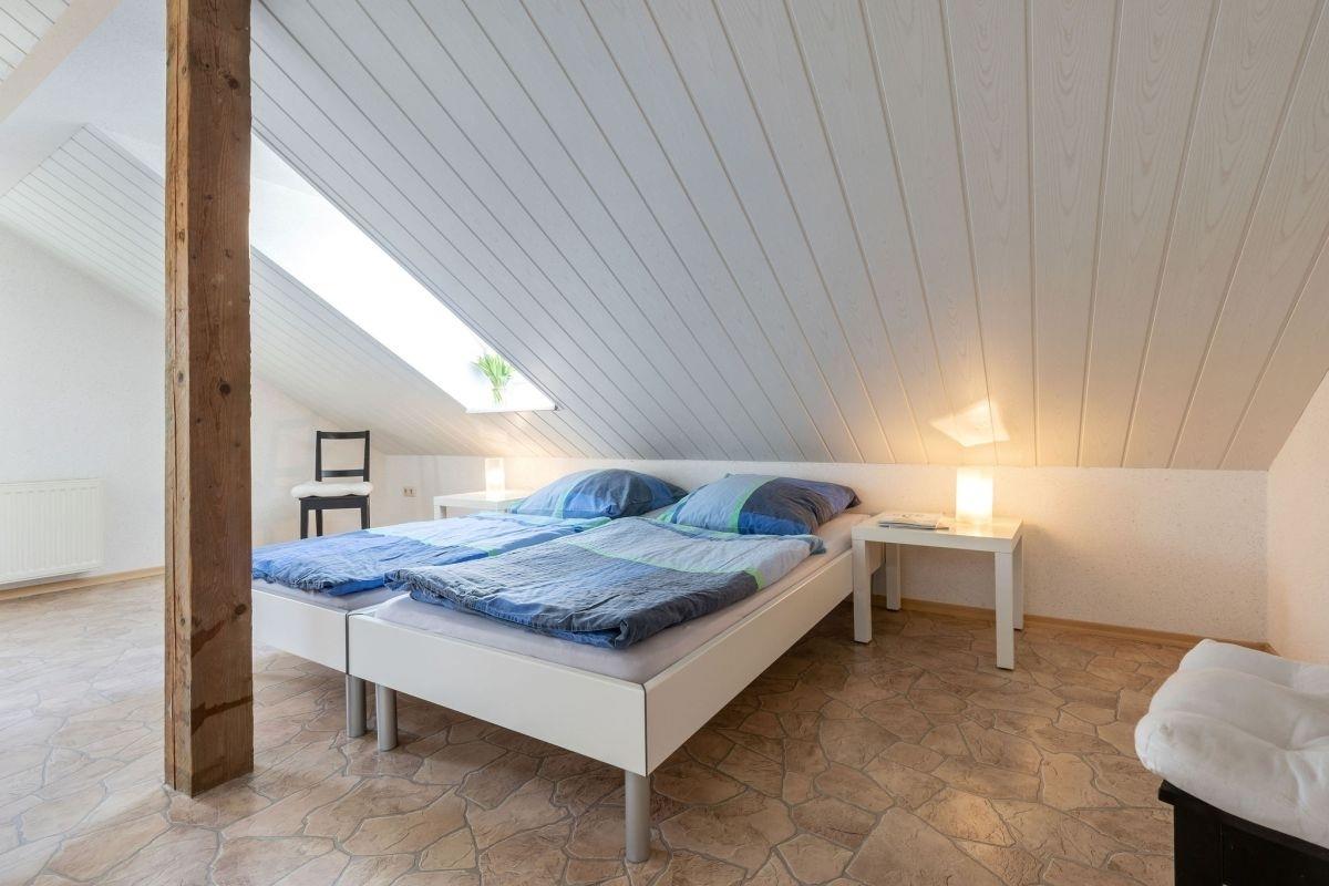 Die Ferienwohnung verfügt im Erdgeschoß über eine Küche mit Essecke. Im 1. Stock befindet sich das Wohnzimmer mit gemütlicher Sitzecke und TV, drei Schlafzimmer, Bad mit Dusche und Badewanne sowie ein Gäste-WC. Die Schlafzimmer sind mit 1 x Doppelbett, 1 x zwei Einzelbetten und 1 x ein Einzelbett ausgestattet. Babybett und Kinderhochstuhl kann gestellt werden.