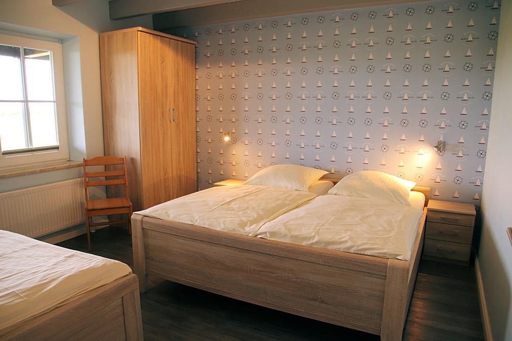 Im Erdgeschoss liegen die zwei Schlafzimmer, besonders die Holzbalkendecke macht die Räume sehr gemütlich. Auch 5 Personen finden Platz für sanfte Träume: ein Zimmer hat ein Doppelbett, im zweiten Zimmer steht ein Doppelbett und ein Einzelbett. Im Bad erfrischen Sie sich unter einer modernen Dusche.