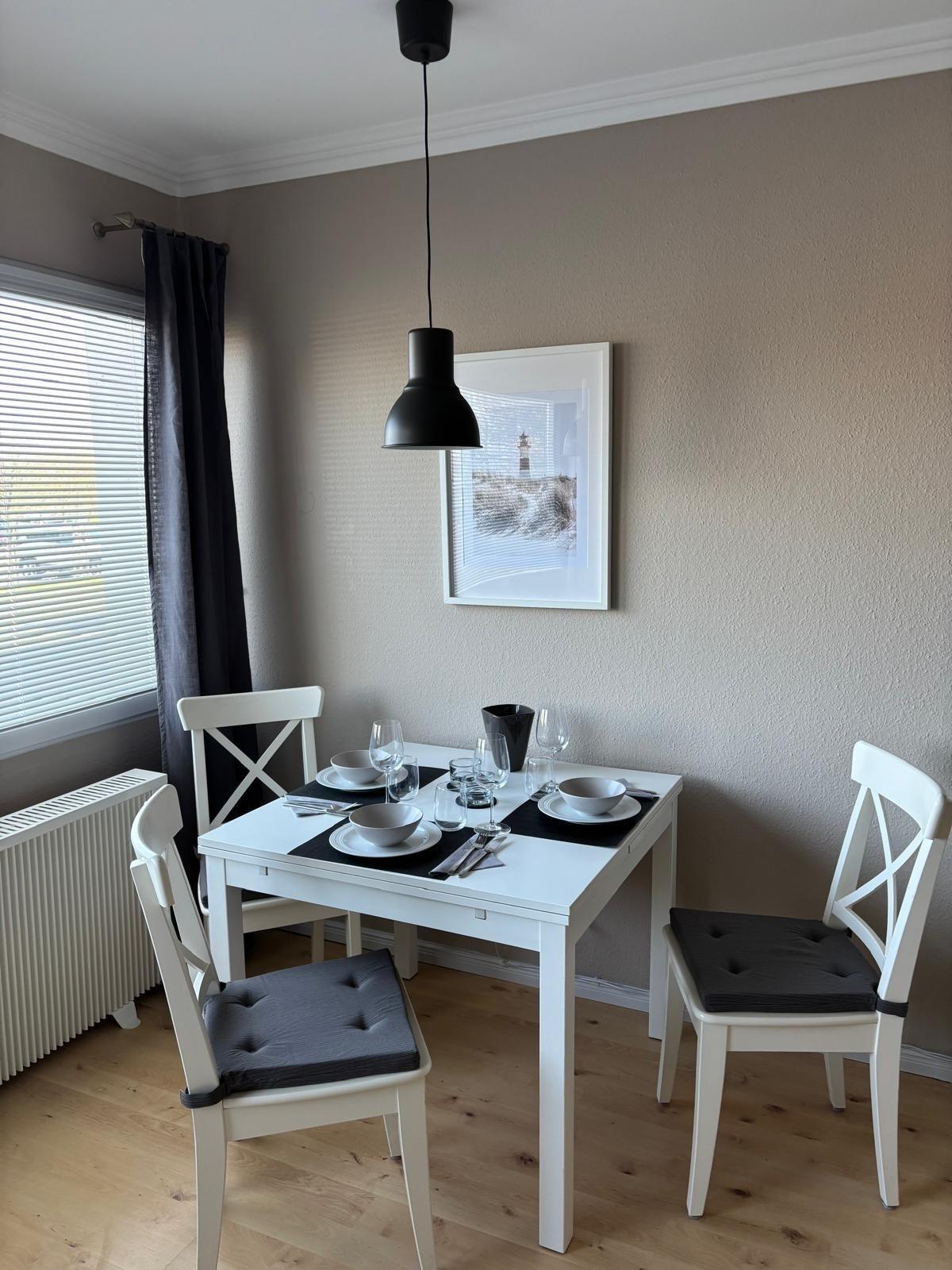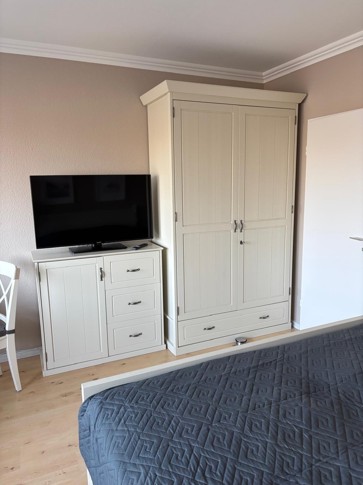 1-Raum-Appartement im Erdgeschoss (25m²), Nichtraucher. Das Wohn-Schlafzimmer ist in einen Schlaf- und einen Wohnbereich aufgeteilt. Schlafbereich mit Doppelbett, Zubehör und Kleiderschrank. Der Wohnbereich verfügt über eine Couch mit kleinem Tisch, Essecke mit 3 Stühlen. Die Küchenzeile ist mit einem kleinen Ceranfeld sowie einer Mikrowelle, Kaffeemaschine, Wasserkocher und Toaster versehen. Das Bad hat eine Dusche, WC und ein Waschbecken. Außerdem stehen den Gästen ein nummerierter Parkplatz vor der Wohnung (57010)direkt vorm Haus zur Verfügung, Kostenloses W-Lan steht ihnen in kürze zur Verfügung.
