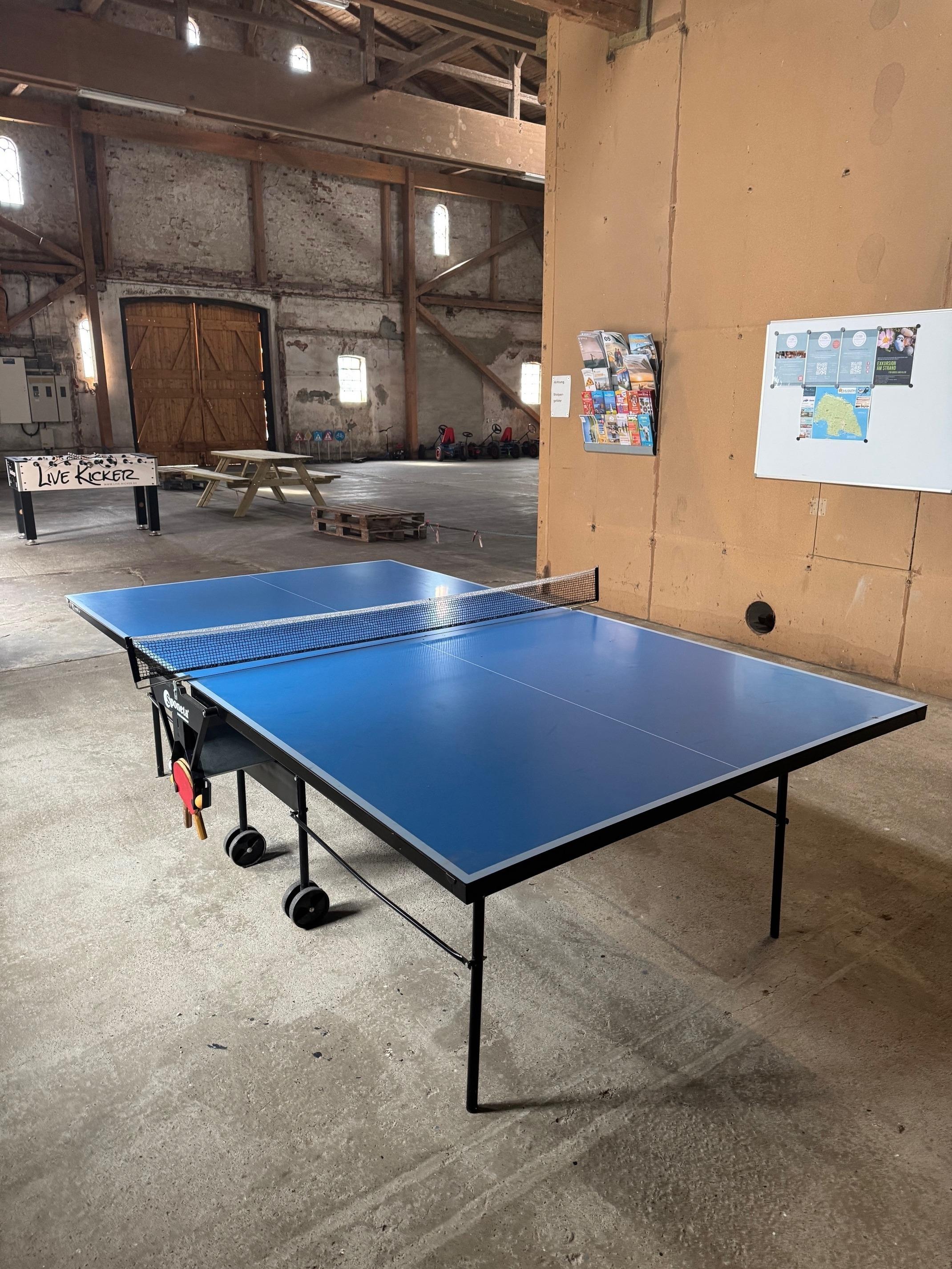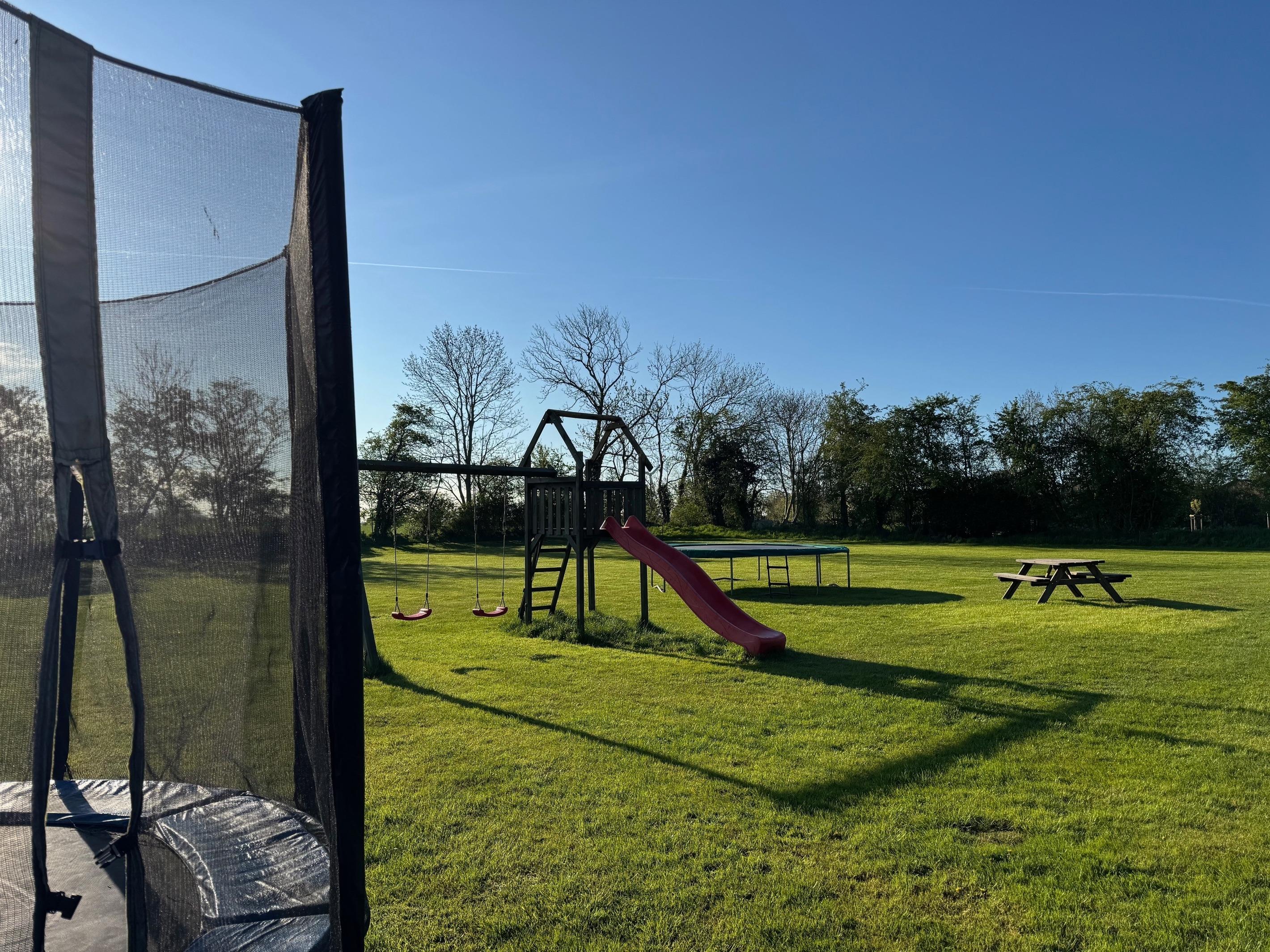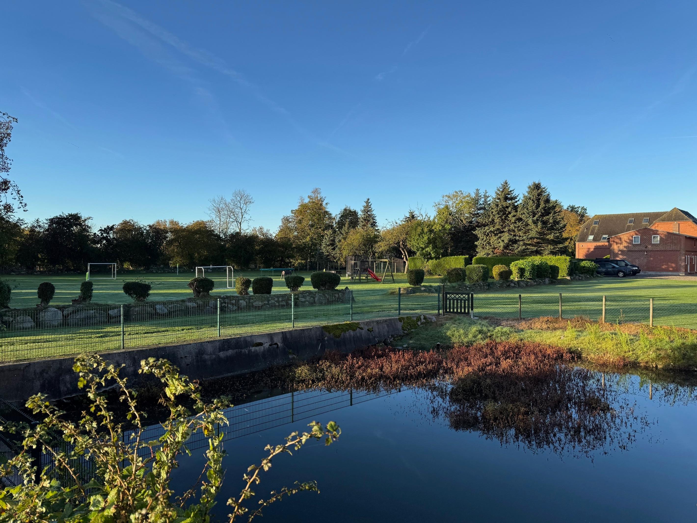 Direkt vom Wohnraum geht’s auf die sonnige Südterrasse mit Strandkorb, Gartenmöbeln und jeder Menge Platz zum Durchatmen. Für kleine Abenteurer und große Entdecker gibt es eine Spielscheune, ein riesiges Trampolin, einen Bolzplatz und viele weitere Spielgeräte auf dem Hof – Spaß garantiert!