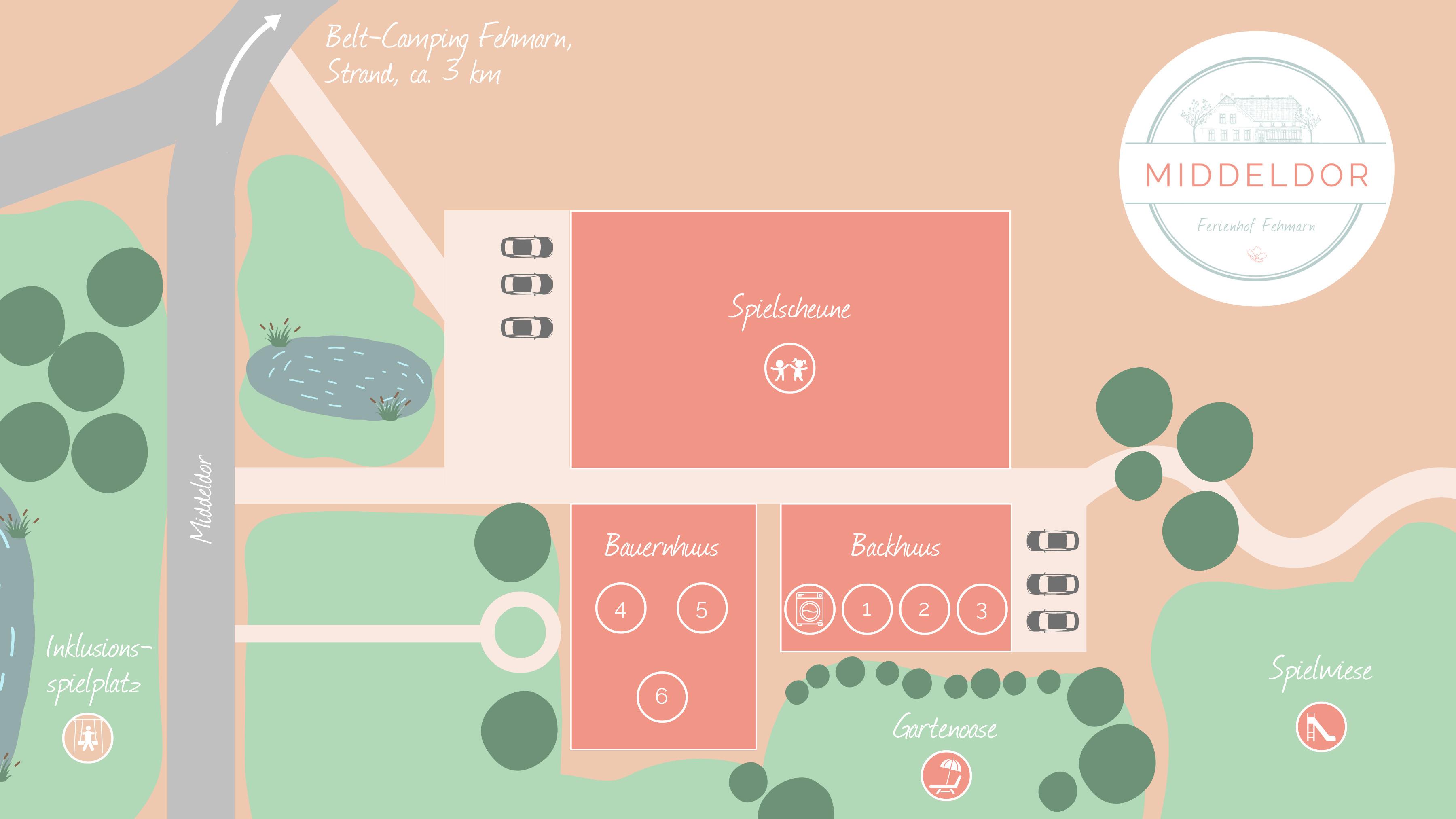 Mitten auf dem grünen Ferienhof Middeldor und trotzdem ganz für sich: In Ferienwohnung 2 im Backhuus wohnst du ruhig, entspannt und mit viel Raum für dich und deine Lieblingsmenschen.