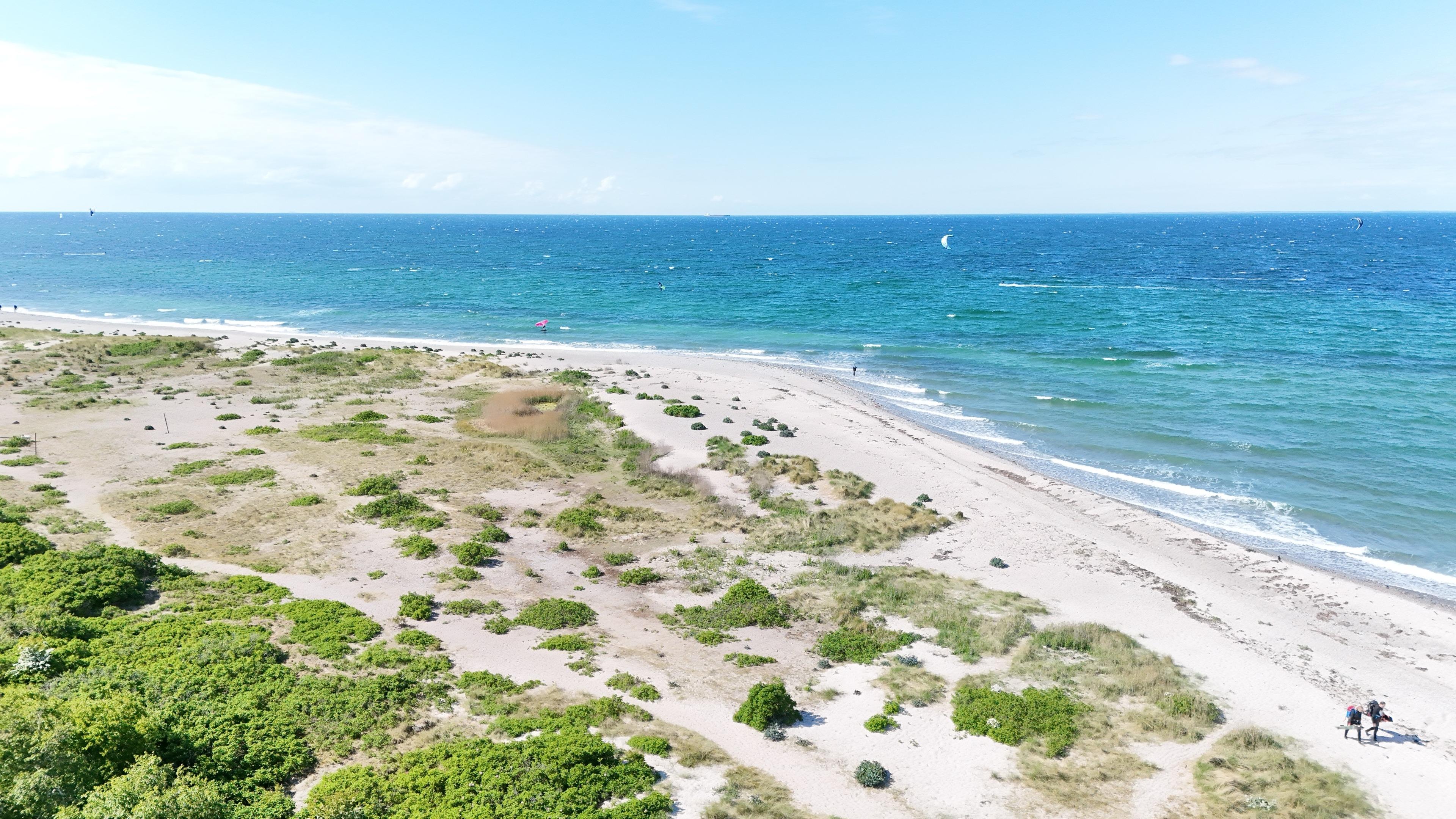 Auf 65 m² und zwei Etagen findest du alles, was das Urlaubsherz begehrt. Im Erdgeschoss erwartet dich ein heller Wohnbereich mit einer funktional ausgestatteten Küchenzeile, gemütlicher Sitzecke und einem Duschbad – ideal für den ersten Kaffee am Morgen oder das gemeinsame Kochen nach einem langen Strandtag.
