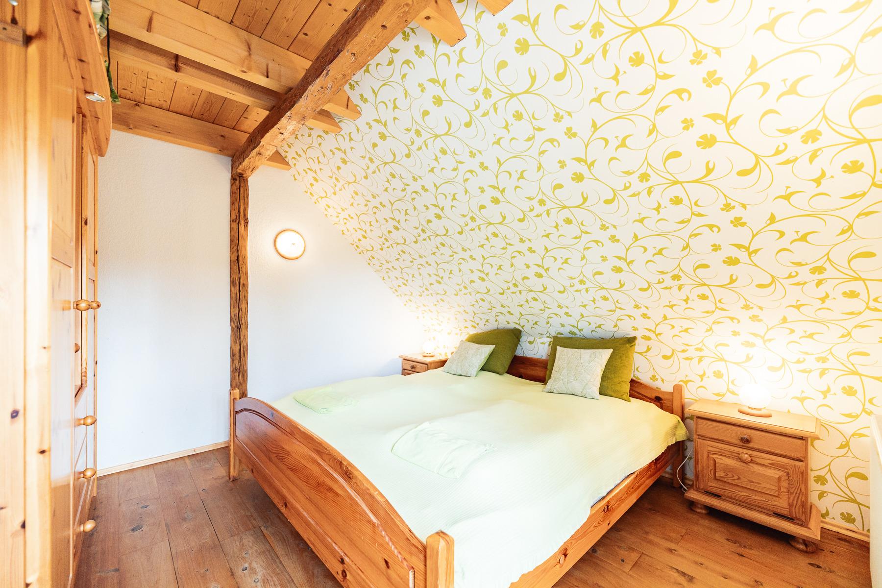 Unsere schöne Ferienwohnung "Kleeblatt" liegt im 1 OG des alten Bauernhauses und verfügt über einen großen Balkon Richtung Westen. Die Wohnung besitzt 2 Schlafräume, einen Wohn-/Essbereich, eine Küche und ein Duschbad. Die Küche ist komplett ausgestattet mit allem, was es für einen erholsamen Urlaub benötigt. Waschmaschine und Trockner können kostenpflichtig bei uns mitbenutzt werden.