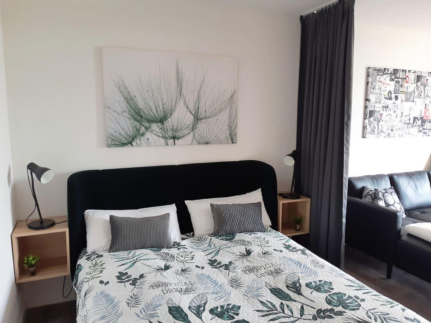 Die Ferienwohnung ist modern und komfortabel eingerichtet und verfügt über einen großzügigen Wohnraum mit Essbereich sowie ein Doppelbett im Schlafbereich. Die Küche ist praktisch und geschmackvoll ausgestattet. Ferner steht Ihnen ein Badezimmer mit begehbarer Dusche zur Verfügung. Abgerundet wird die Wohnung durch das Arbeits- bzw. Ruhezimmer.