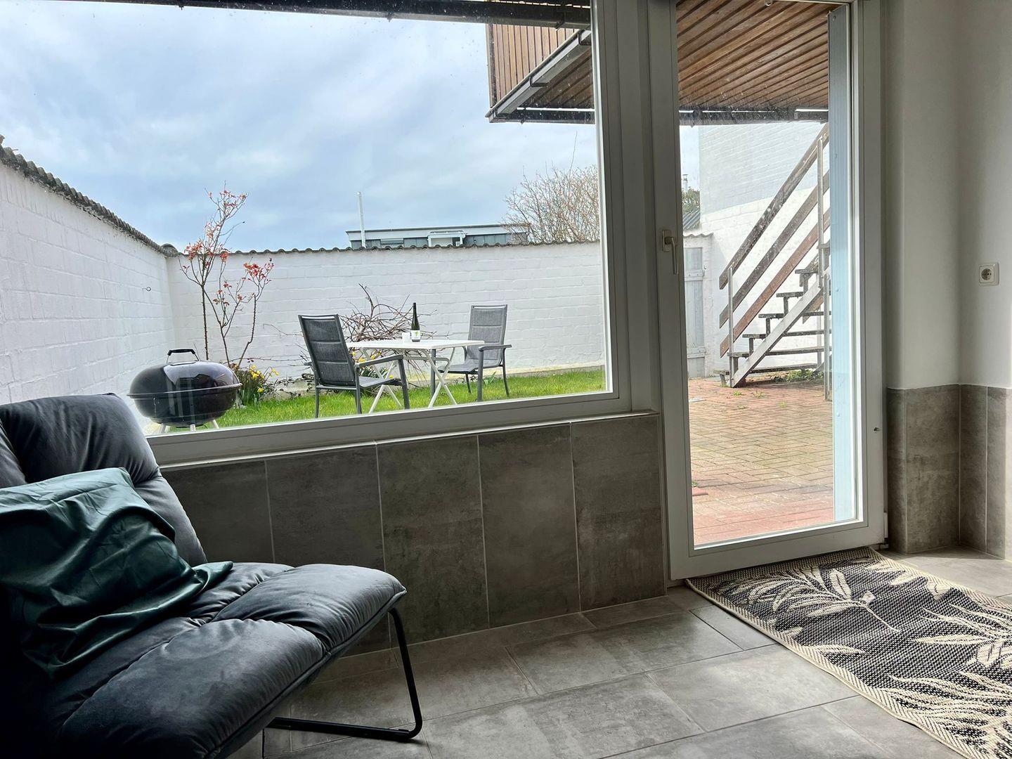 Im Erdgeschoss erwartet Sie ein Schlafzimmer mit zwei Einzelbetten, ein Gäste-WC sowie der Zugang zum privaten Innenhof mit direktem Zugang zum Garten – ein wunderbarer Ort zum Entspannen im Grünen.