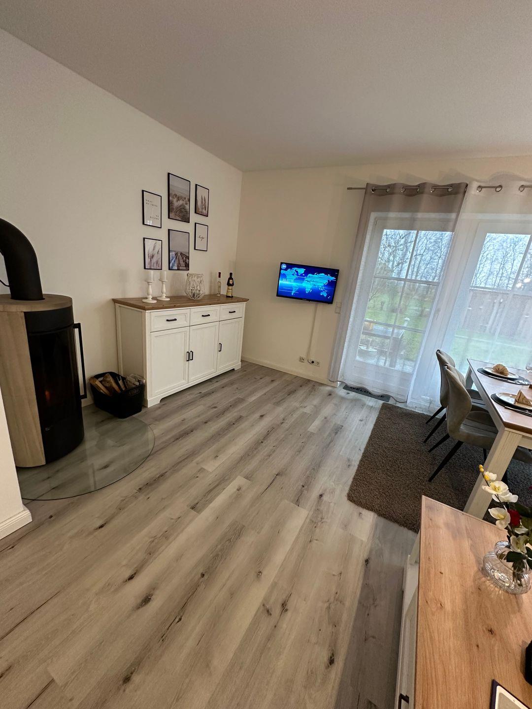 Gemütliche Ferienwohnung Inseloase auf Fehmarn mit Kamin, Terrasse und kostenfreiem Schwimmbadzugang.
