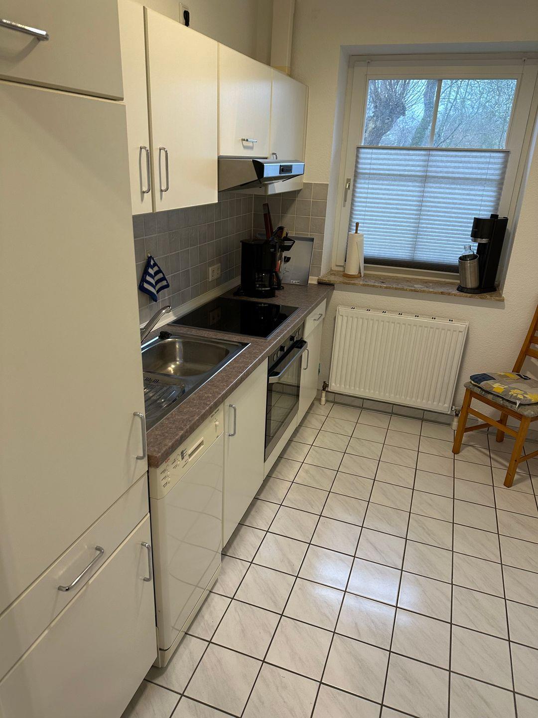 Voll ausgestattete Einbauküche, inklusive Geschirrspüler und Backofen