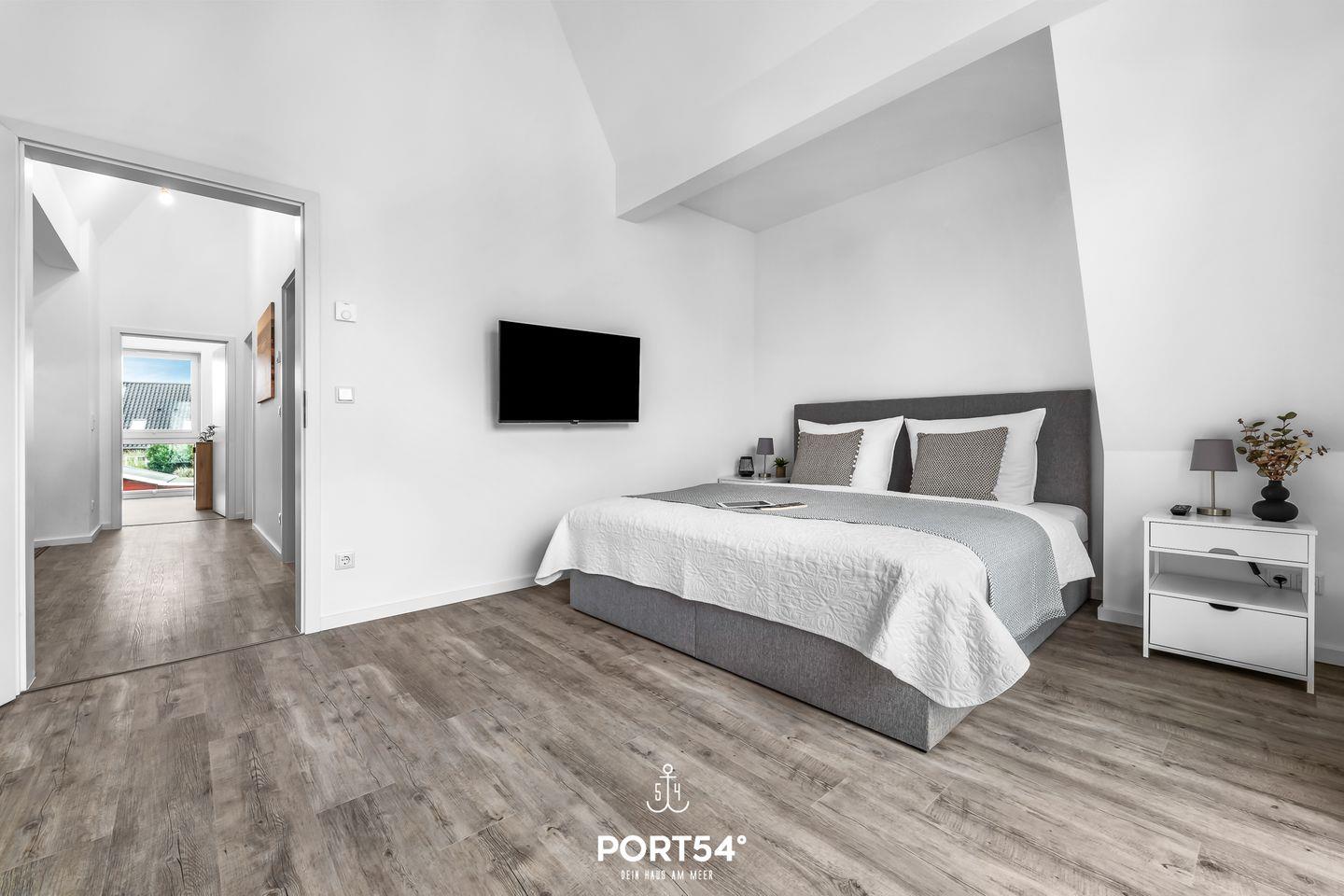 Im Obergeschoss erwarten Dich drei Schlafzimmer sowie das luxuriöse Badezimmer mit finnischer Sauna.
