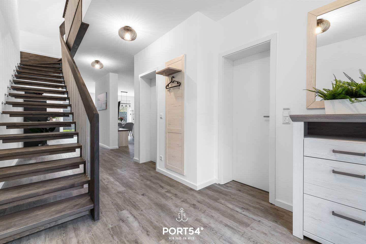 Fühl Dich wie zu Hause in der „Meerheimat“! Auf zwei Etagen und über 122 m² Wohnfläche bietet Dir das Haus drei Schlafzimmer, zwei Badezimmer (Finnische Sauna im oberen Bad), einen geräumigen Wohn- und Essbereich mit angrenzender offener Küche sowie eine vollmöblierte Sonnenterrasse.