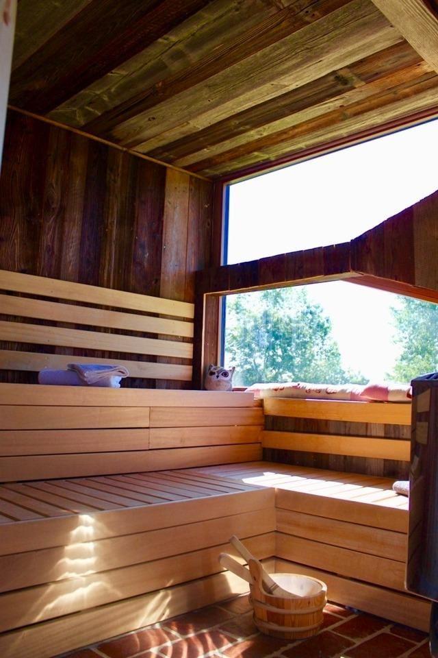 [ Fortsetzung ... ] Auf unserem 4000 qm großen Außenbereich befindet sich ein Saunahaus mit Panoramasauna und Außendusche.