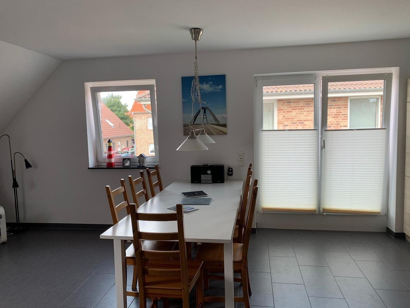 Die 94 qm große Ferienwohnung befindet sich im ersten Stock eines Zweifamilienhauses, welches in einer ruhigen Sackgasse (Spielstraße) am Ortsrand von Burg auf Fehmarn liegt. Sozusagen direkt vor der Haustür beginnt einer der langen Radwege der Insel, so dass die Ferienwohnung ein idealer Ausgangspunkt für diverse Radtouren ist.