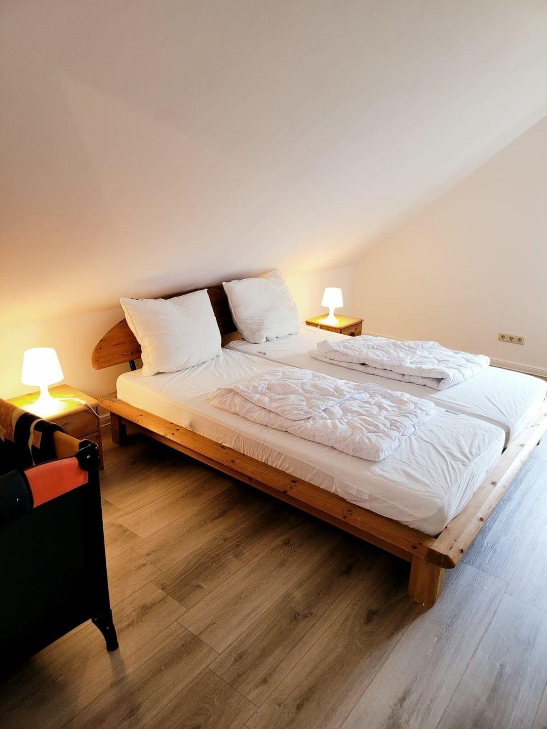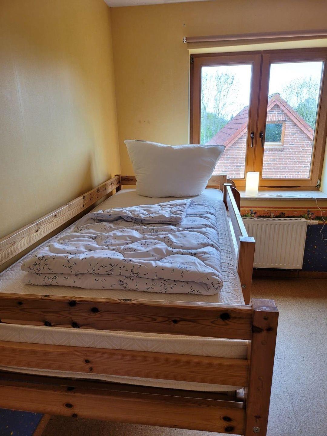 Das Ferienhaus ist mit vier Schlafzimmern ausgestattet. Drei Doppelbettzimmer und ein Zimmer mit zwei Einzelbetten. 6 Erwachsene und 2 Kinder finden hier Platz. Ferner ist ein Duschbad und ein zusätzliches Volbad mit Dusche vorhanden.