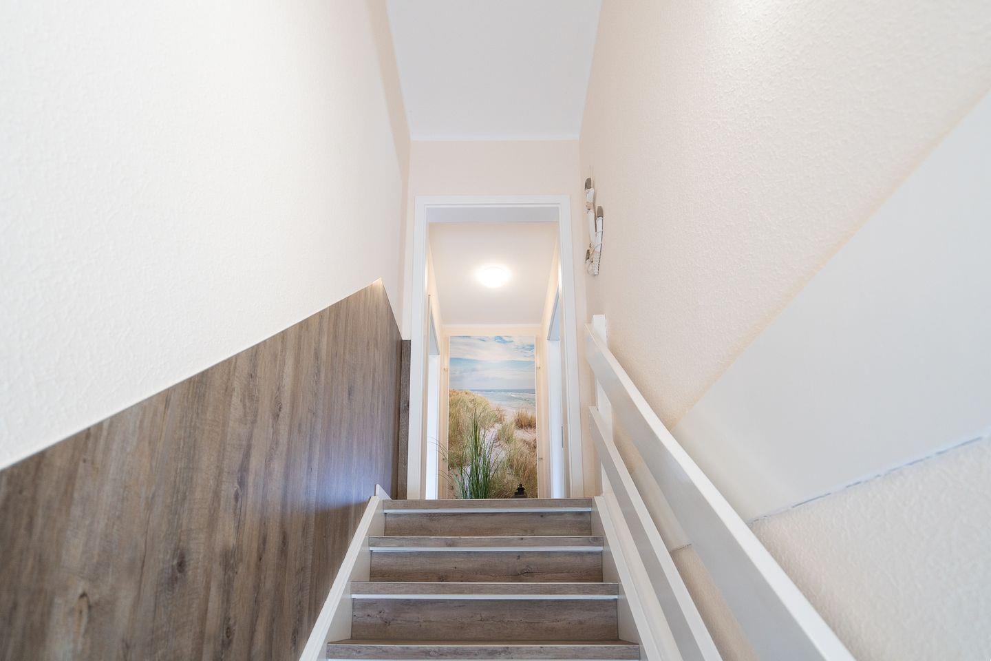 Diese charmante 55 m² große Ferienwohnung im 1. Obergeschoss bietet Komfort für zwei Gäste und ihre vierbeinigen Begleiter. Die offene Küche ist mit allen gängigen Geräten ausgestattet. Das gemütliche Schlafzimmer, das moderne Duschbad mit Haartrockner und die einladende Terrasse mit Grillplatz, Markise, Sitzmöglichkeiten, Sonnenliegen und Strandkorb sorgen für einen entspannten Aufenthalt. Das 900 m² große, eingezäunte Grundstück bietet viel Platz zum Toben für Hunde.