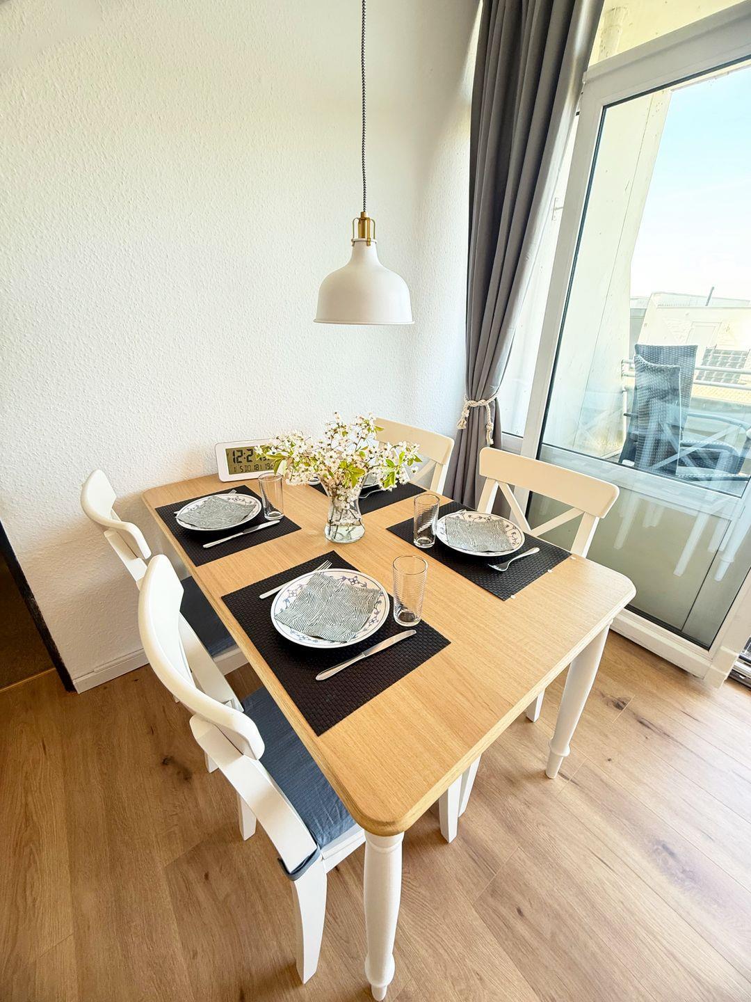 Die Ferienwohnung wurde rundum modernisiert und bietet nun ein frisches, modernes Ambiente. Der Wohn- und Schlafbereich wurde mit neuen, stilvollen Möbeln ausgestattet, die, wie auch der neue Fußboden, eine gemütliche Atmosphäre schaffen. Die neue Küche ist hochwertig und modern ausgestattet – mit vier Induktionskochfeldern, Backofen, Spülmaschine sowie einer Kühl-Gefrierkombination – und lässt keine Wünsche offen. Das Bad wurde ebenfalls komplett neu gestaltet und bietet nun eine großzügige Dusche mit Regenduschfunktion, um den Aufenthalt noch angenehmer zu machen.