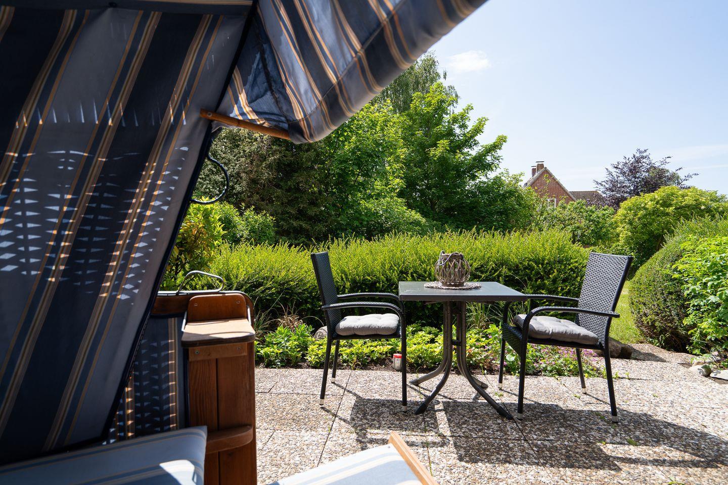 Die voll ausgestattete Küche mit Backofen, Geschirrspülmaschine, Cerankochfeld, Kühlschrank, Wasserkocher, Mikrowelle, DAB-Radio, Toaster, Filter- und Pad Kaffeemaschine lässt keine Wünsche offen. Die teilweise überdachte Terrasse mit Strandkorb, Gartenmöbeln und einer großen Liege- und Spielwiese lädt zum Verweilen im Freien ein.