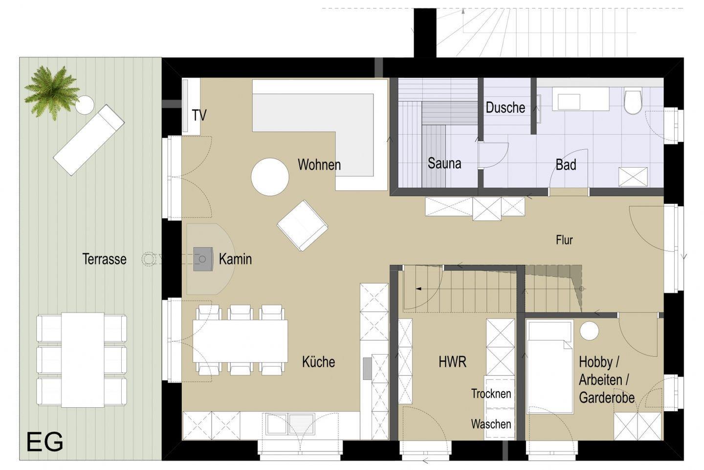 Wetterunabhängige Erholung garantiert der private Wellnessbereich mit Sauna zur alleinigen Nutzung. Für besondere Behaglichkeit sorgt eine Öl-Fußbodenheizung im gesamten Haus.