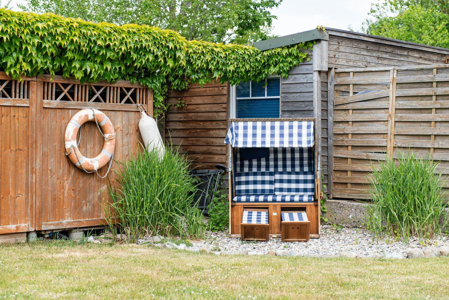 Freistehendes Ferienhaus Huus Strandgut auf Fehmarn mit Sauna, großem Garten und vielfältigen Freizeitmöglichkeiten.