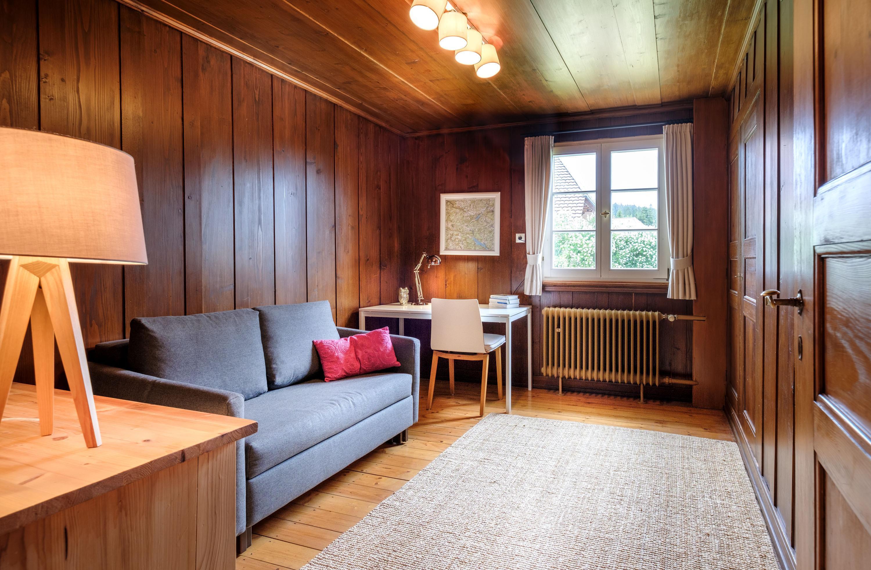 Villa Bergfriede was built 100 years ago as a vacation home by an industrialist family from Freiburg on the Feldberg and was recently lovingly and carefully renovated by the owner. It is an authentic Black Forest house with bright, pleasant and homely rooms. While the functional rooms such as the bathroom, kitchen and WC have been stylishly renovated, the living rooms and bedrooms exude historic charm with 100-year-old wood paneling. In the house there are 5 bedrooms for up to 10 guests - 1 bedroom with a French double bed (140cm x 200cm), 3 bedrooms with two single beds each (90cm x 200cm) and 1 combined bedroom and study with a comfortable sofa bed - a modern bathroom, an extra guest toilet, a great kitchen and a living room with a bright conservatory facing the nature.