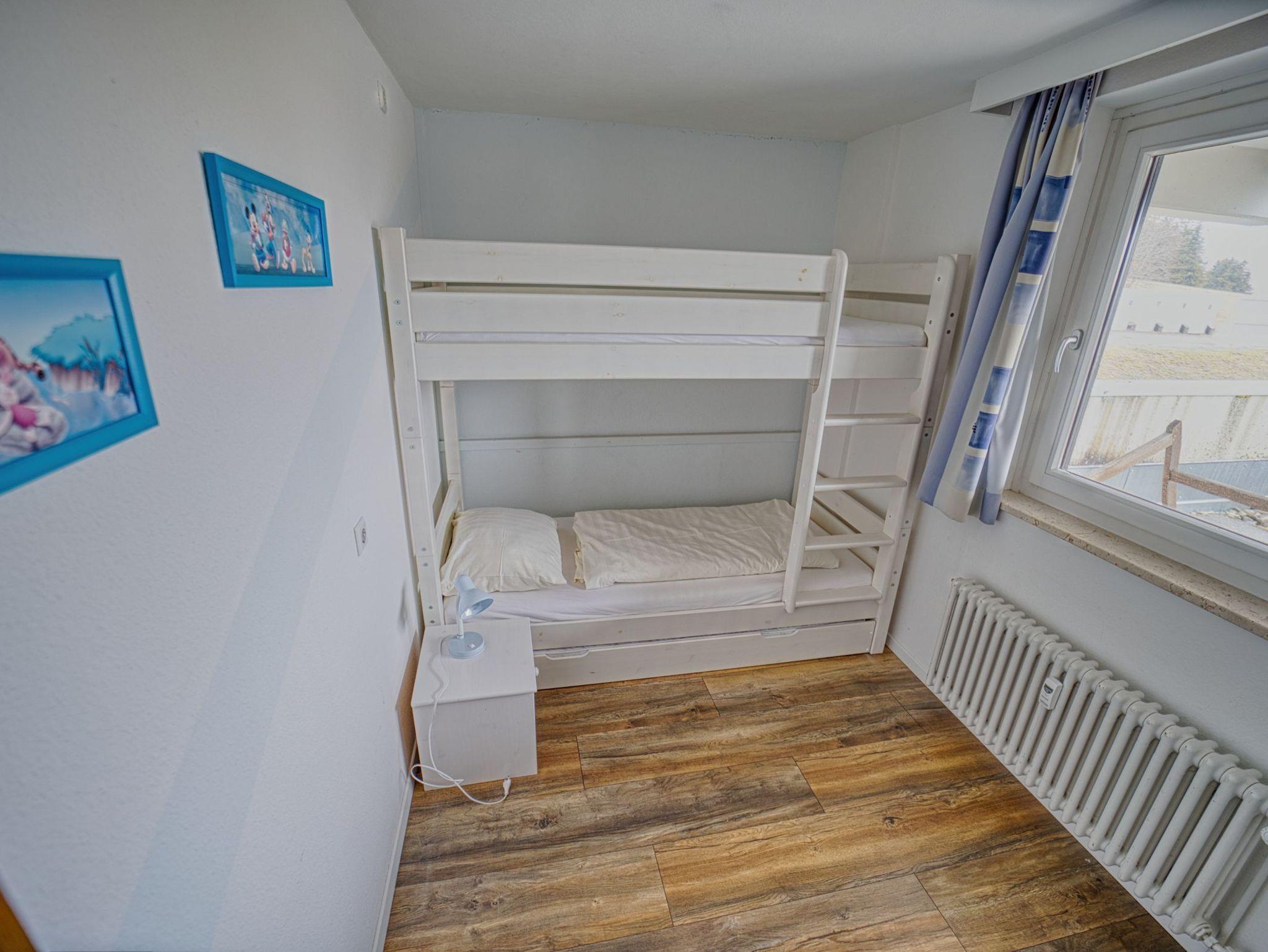 Diese Ferienwohnung befindet sich in der 3. Etage eines Appartementhauses und bietet Platz für maximal 2 Erwachsene und 2 Kinder unter 16 Jahre. Im Kinderzimmer, abgetrennt durch eine Tür, befindet sich ein Etagenbett.