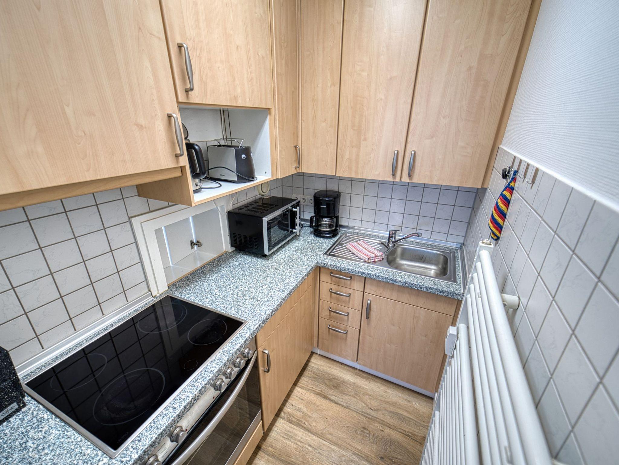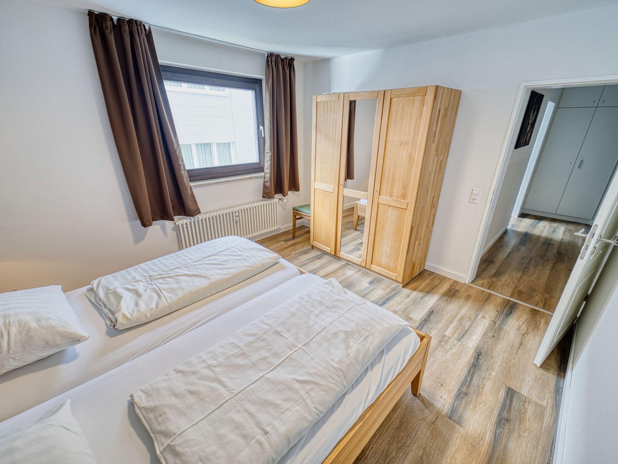 Diese Ferienwohnung befindet sich in der 5. Etage eines Appartementhauses und bietet Platz für maximal 4 Erwachsene und 2 Kinder unter 16 Jahre. Beide Kinderzimmer sind abgetrennt durch eine Tür. Ein Kinderzimmer verfügt über zwei Einzelbetten das 2. Kinderzimmer über ein Etagenbett.