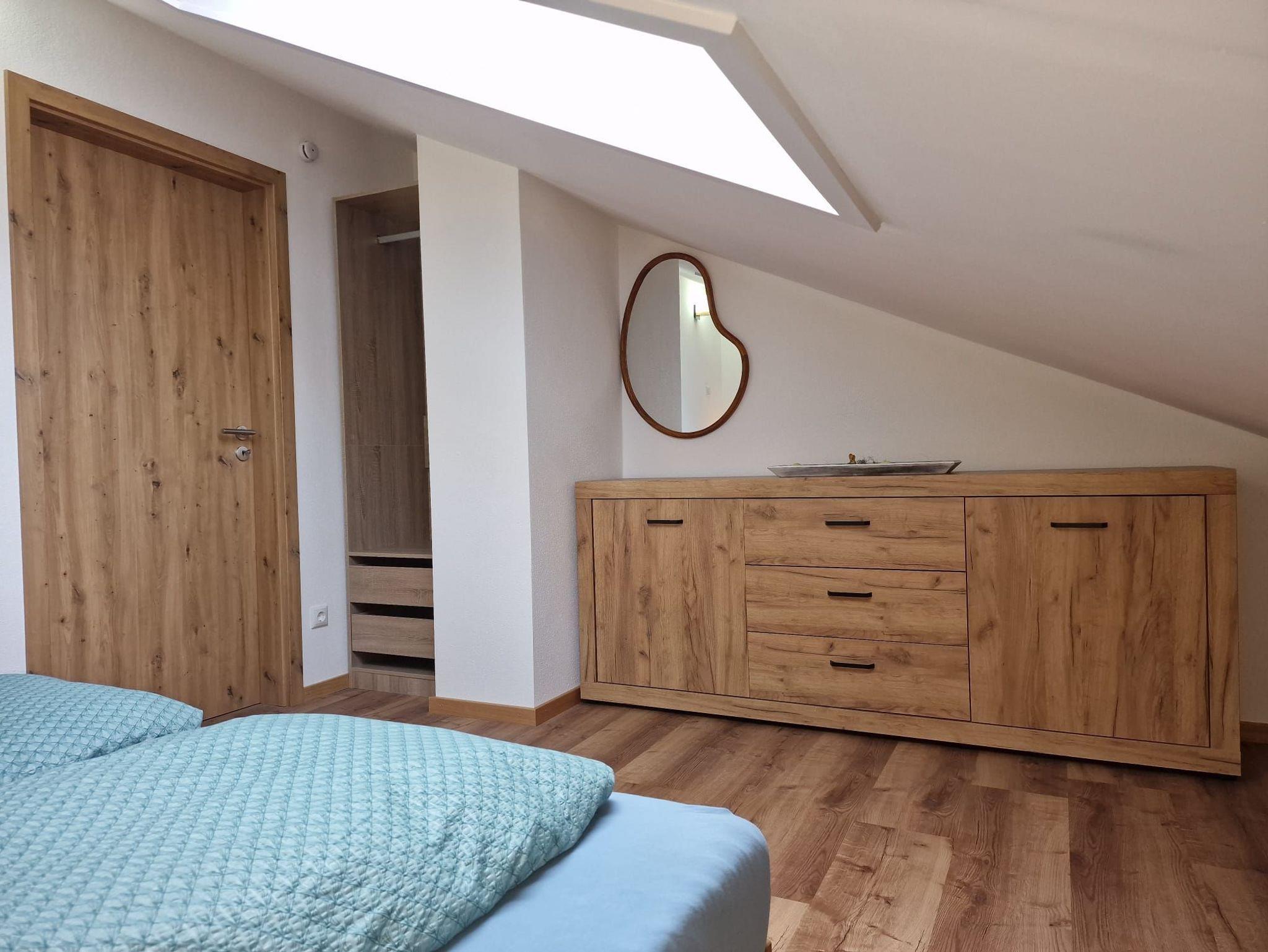 Die 58 qm große Wohnung verfügt über ein Schlafzimmer mit einem komfortablen Doppelbett, ein Badezimmer mit WC, Dusche und Waschmaschine. Außerdem gibt es einen offenen Küchen- und Wohnbereich, der komplett ausgestattet ist und eine ausziehbare Schlafcouch bietet. Der Raum lädt mit seiner gemütlichen Atmosphäre zu entspannten Abenden ein.