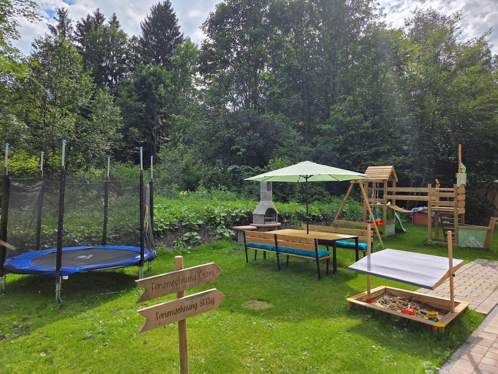 Im Außenbereich steht ein Garten mit Kinderspielplatz, Grill und Sitzmöglichkeiten zur Nutzung zur Verfügung.