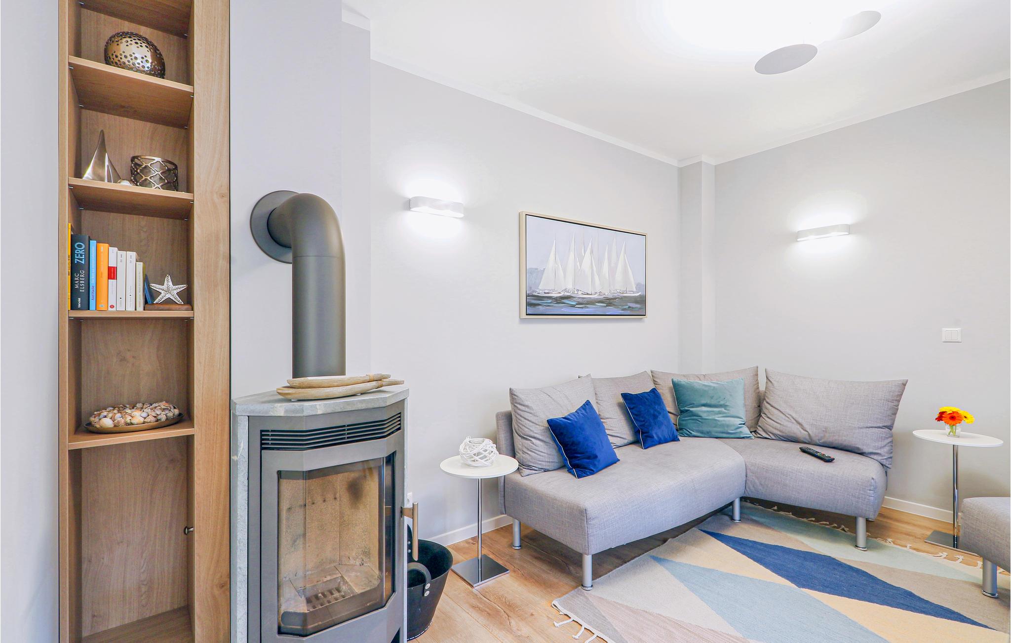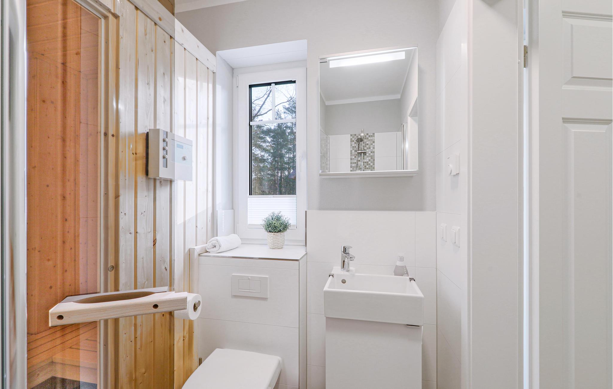 An kalten Tagen können Sie sich in der finnischen Sauna aufwärmen und es sich anschließend vor dem Kaminofen im Wohnbereich gemütlich machen. Die Schlafzimmer verfügen über je ein gemütliches Doppelbett. Im Ferienhaus sind insgesamt 3 Fernseher sowie eine Soundbar, BlueRay-, DVD- und CD-Player vorhanden.
