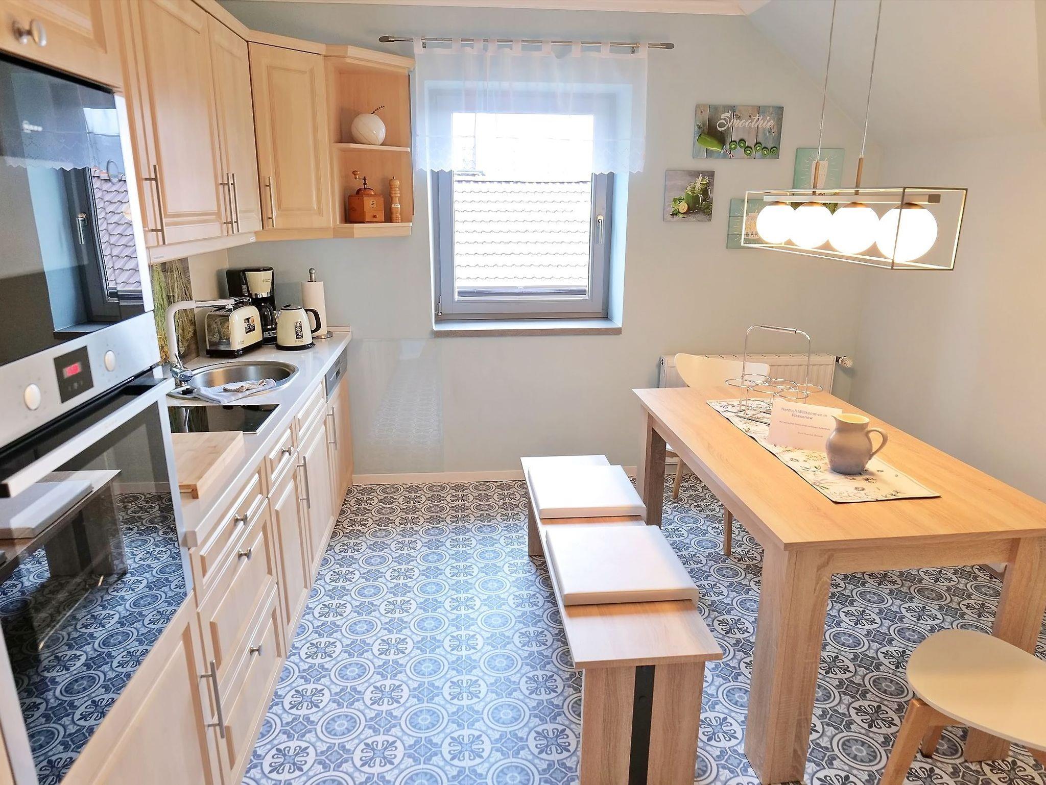 - vollausgestattete Küche mit Essbereich für 4 Personen, ausgestattet mit Ceran-Herd, Kühlschrank, Mikrowelle, Geschirrspüler, Kaffeemaschine, Toaster, Wasserkocher, Geschirr, Besteck u.v.m.