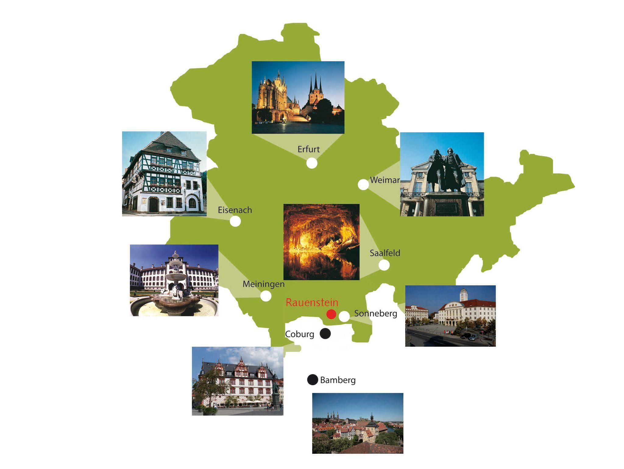 Wir sind ein idealer Ausgangspunkt für Wander- und Radwandertouren und nur 10 km vom Rennsteig entfernt. Damit Sie Ihren Tag angenehm einstimmen können, bieten wir Ihnen auf Wunsch Brötchenservice oder ein Thüringer Landfrühstück.