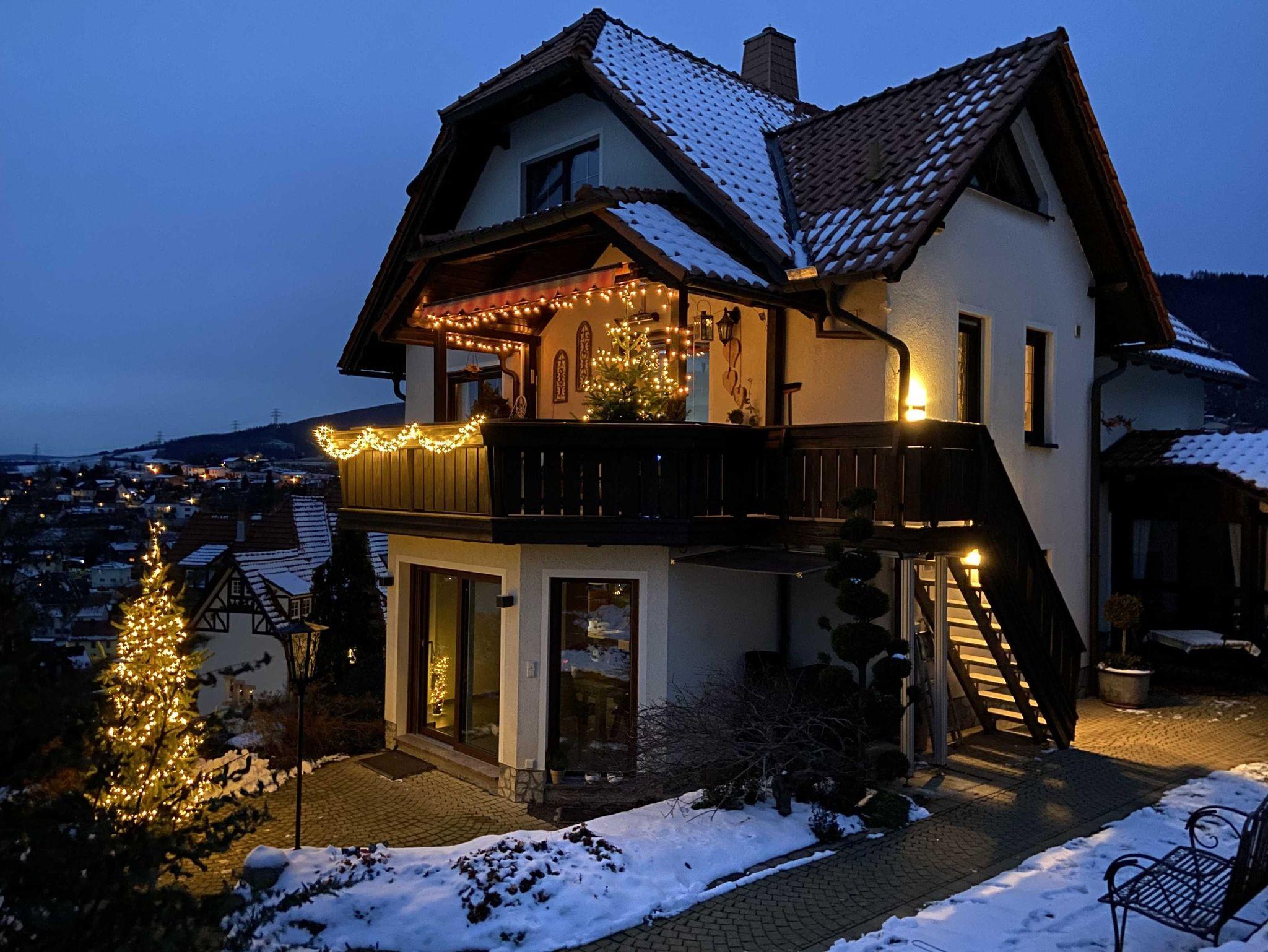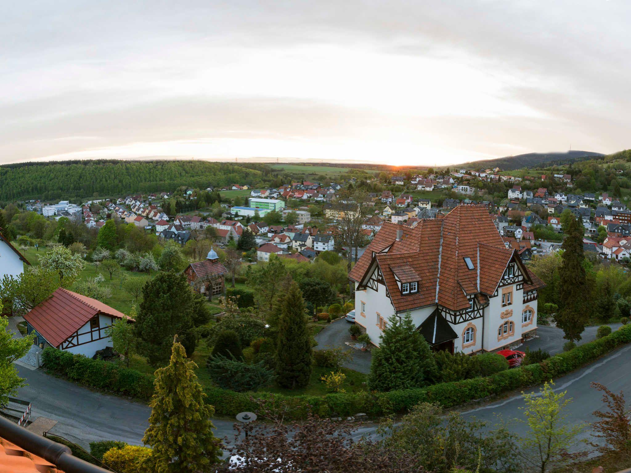 Unsere Ferienwohnung Panorama ***** bietet Ihnen einen herrlichen Ausblick weit in die Landschaft und auf den Ort Rauenstein. Die 75 qm große Wohnung ist komfortabel eingerichtet. Sie hat einen großen Wohnraum mit integrierter Küchenzeile, ein Schlafzimmer mit Doppelbett und ein kleines Zimmer mit 2 Einzelbetten, das auch als Lese- oder Ruhereum genutzt werden kann. Das Bad ist seit April 2017 neu installiert, hat eine Badewanne mit Dusche, Toilette und neue Badmöbel. Handtücher und Bettwäsche werden vom Haus gestellt. Der im Erdgeschoß befindliche Wintergarten steht für unsere Gäste zur freien Nutzung zur Verfügung. Eine großzügige Liegewiese, mehrere Sitzgruppen sowie Grillplatz, Tischtennis usw. laden zur Erholung und Entspannung ein.