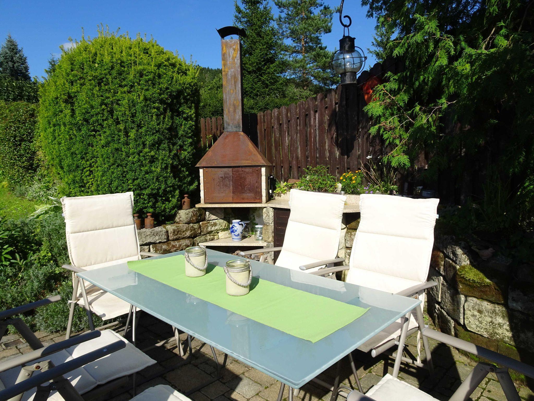 Mehrere Sitzgruppen rund um das Haus, eine großzügige Liegewiese mit Tischtennis, laden zum Faulenzen ein. Original Thüringer Spezialitäten können Sie bei einem unterhaltsamen Grillabend genießen.