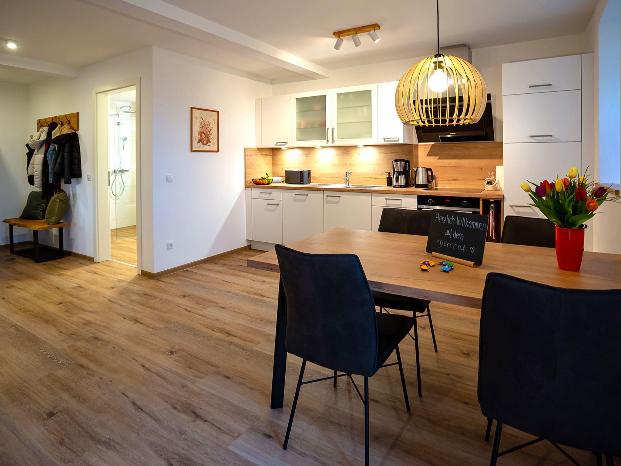 Idyllisch am Waldrand, knapp zwei Kilometer nordwestlich von Rauenberg, liegt der erstmals 1178 in einer päpstlichen Urkunde als Besitzung des Klosters Bronnbach erwähnte und heute im landwirtschaftlichen Haupterwerb betriebene Gutshof Dürrhof. Ideal gelegen, in Nähe der Residenzstadt Würzburg, zwischen den historischen Städten Wertheim und Miltenberg. Erleben Sie modernes Wohnen in historischen Gemäuern in ruhiger, einzigartiger Lage und genießen Sie die Ruhe zwischen weiten Wäldern, Wiesen und Feldern. Die ländliche Lage des Hofes eignet sich hervorragend für ausgiebige Wander- und Fahrradtouren zu den mittelalterlichen Städten Miltenberg oder Wertheim. Erleben Sie zahlreiche Freizeitaktivitäten, Kultur und Erholung im lieblichen Taubertal, Maintal oder direkt vor der Haustüre. Toll für Familien oder als Auszeit vom Alltagsstress. Die neuen, modern ausgestatteten Ferienwohnungen des Hofes wurden mit viel Liebe zum Detail gestaltet. Jede der Wohnungen hat ihren ganz eigenen „Flair“.