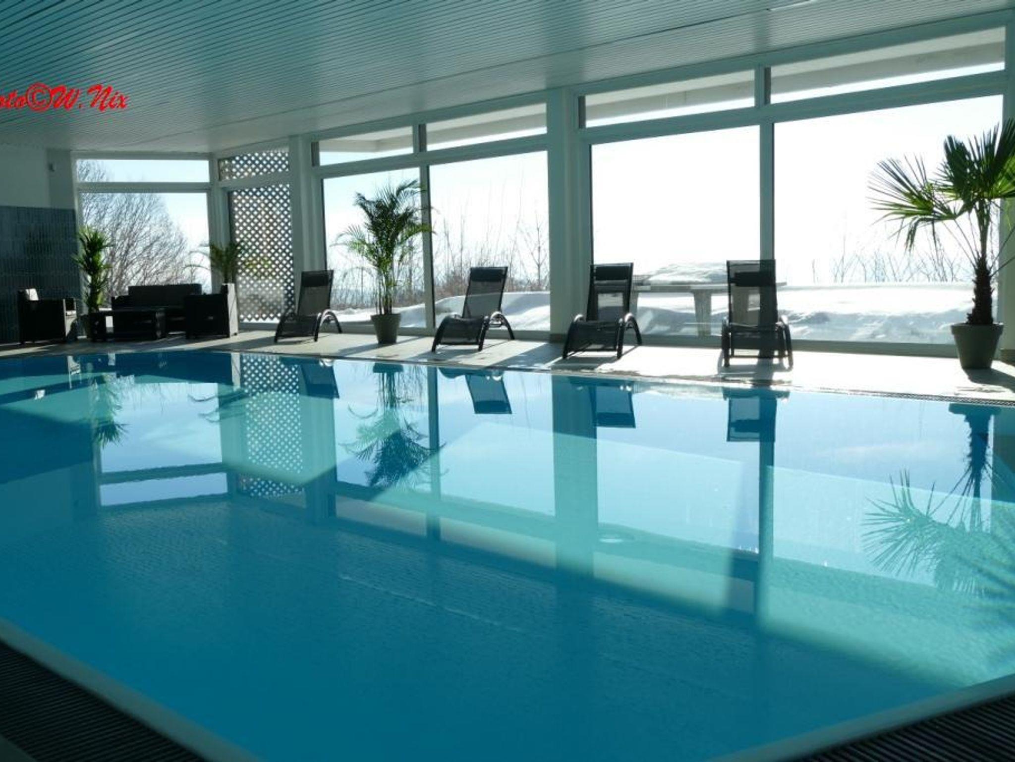 Das Gebäude bietet bei beiden Wohnungen einen direkten Zugang (durch das UG) zum Pool, Sauna, Gesundheitszentrum mit Massagepraxis und das Restaurant Geyerei mit wunderschöner Aussicht.