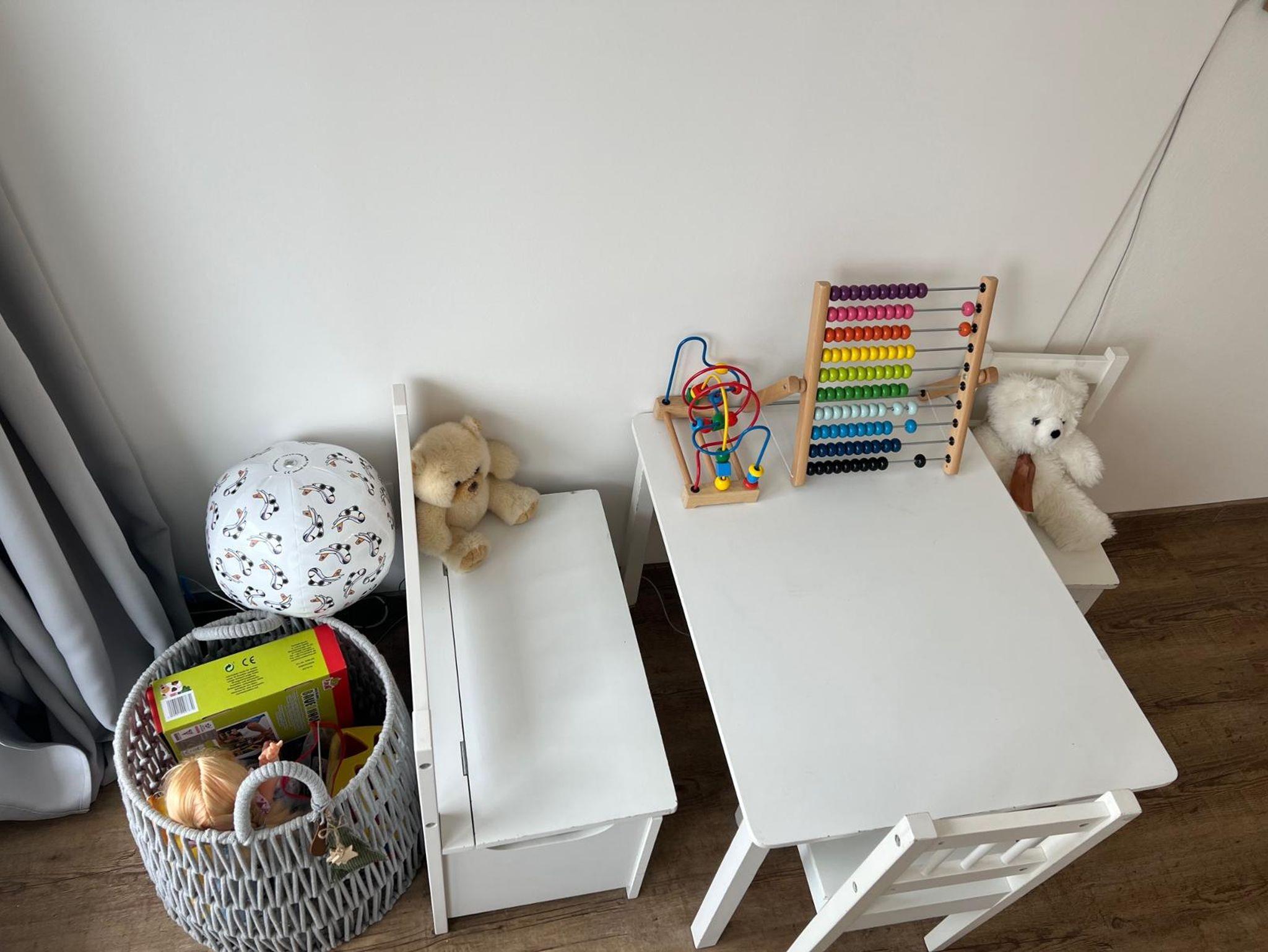 Zum Schlafen finden Sie hier ein 180x200 Doppelbett, ein Stockbett 90x200, sowie ein Babyreisebett und zusätzlich im Wohnzimmer eine Schlafcouch mit ausklappbarer 140x200 Matratze. Wir haben eine Spielecke mit Kindertisch, Spielsachen sowie einen Hochstuhl, Kindergeschirr und einen Buggy. Für gemütliche TV oder Netflix-Abende (bitte mit den eigenen Zugangsdaten anmelden) gibt es einen Flatscreen-TV an der Wand oder Gesellschaftsspiele.