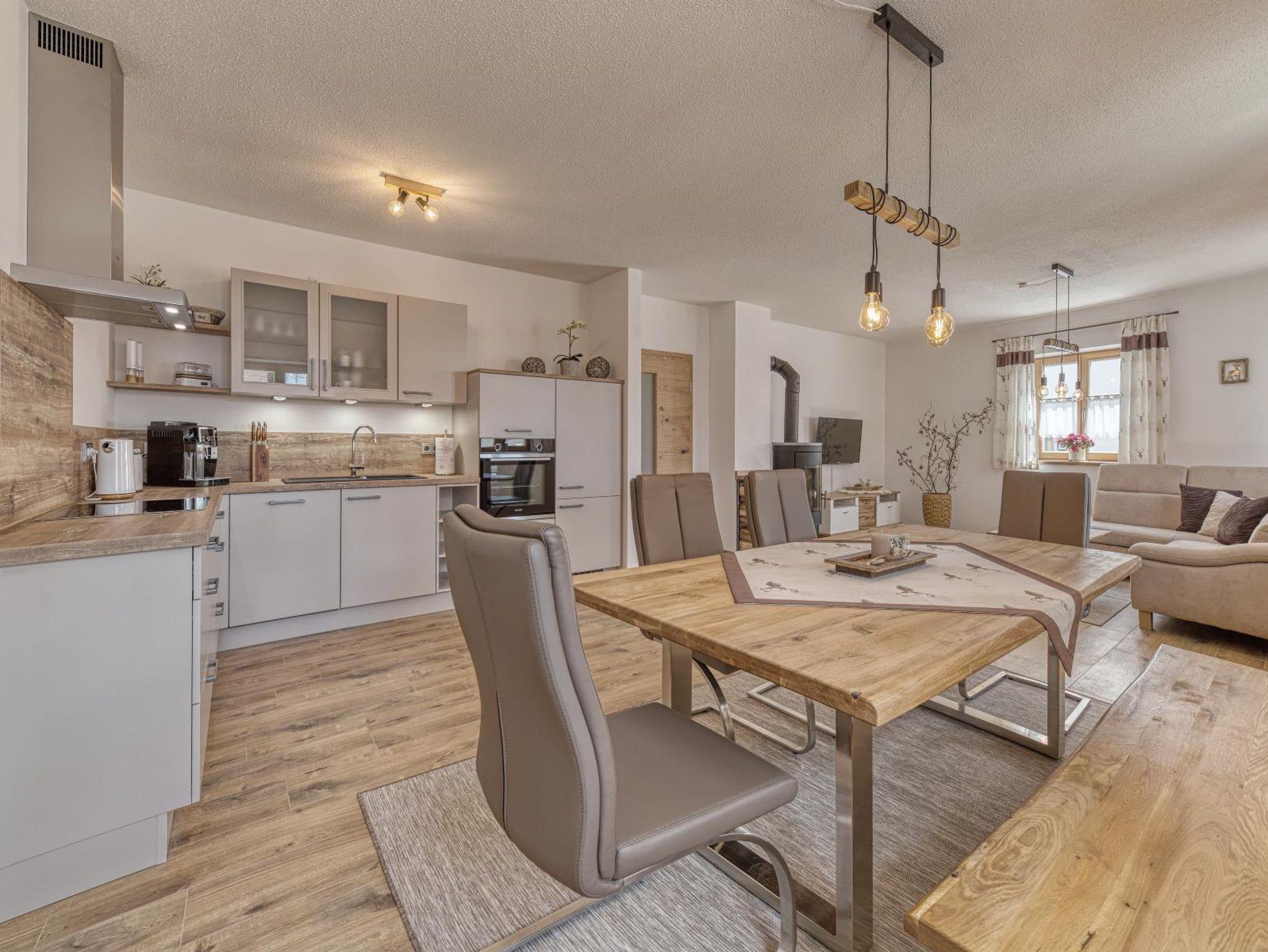 Essbereich mit Kaminofen und Flachbild-TV verspricht entspannte Abende