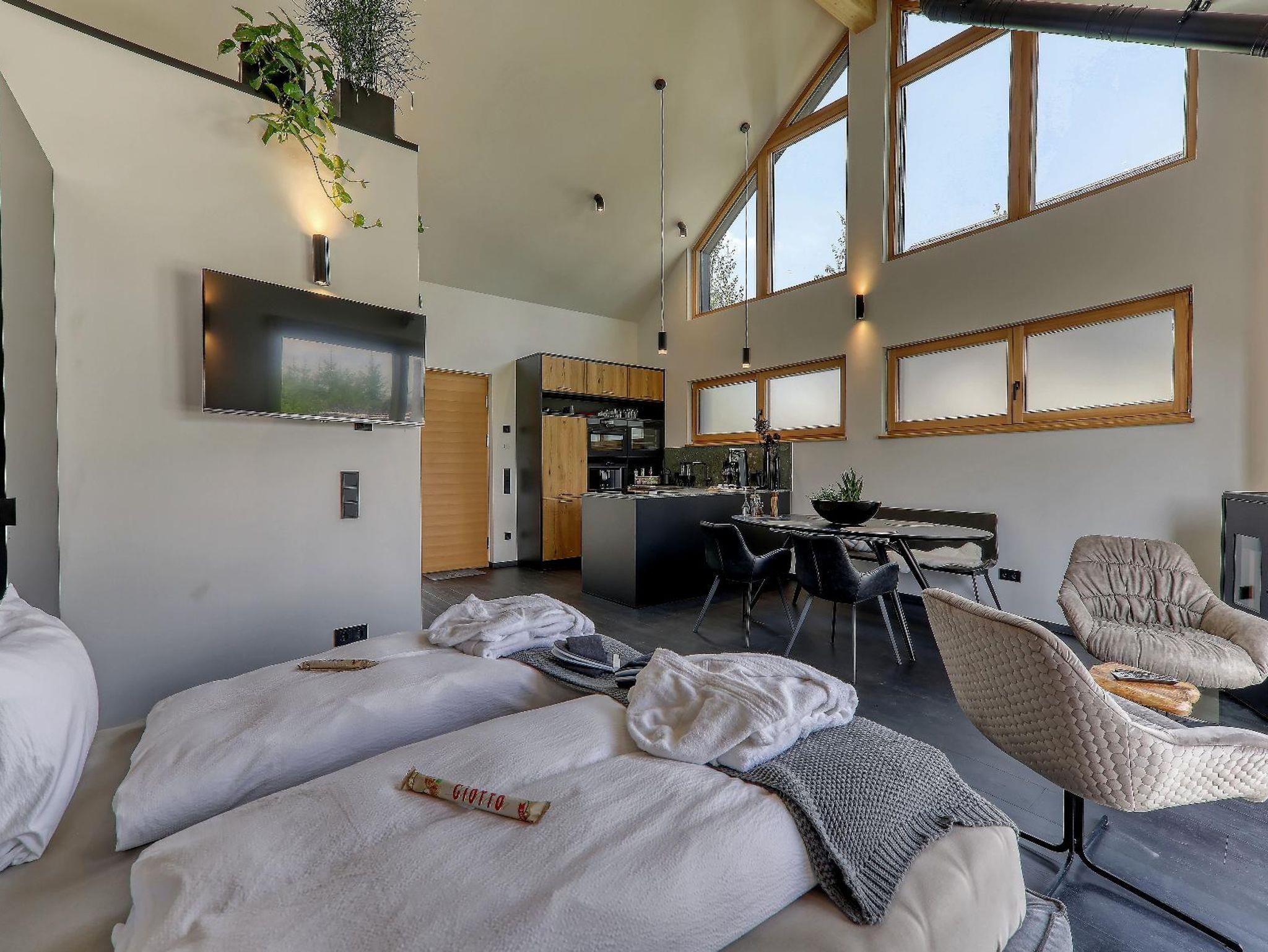 Im Schlaf-/Wohnraum steht Ihnen ein großer Fernseher zur Verfügung.