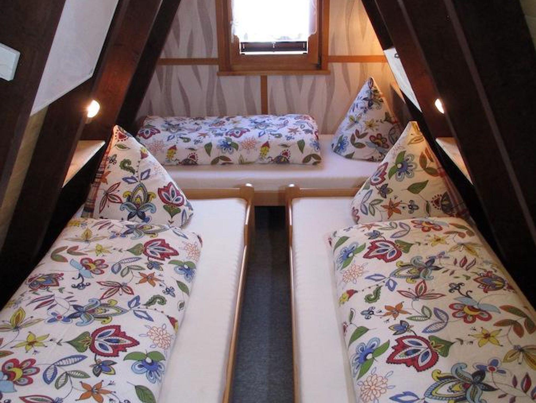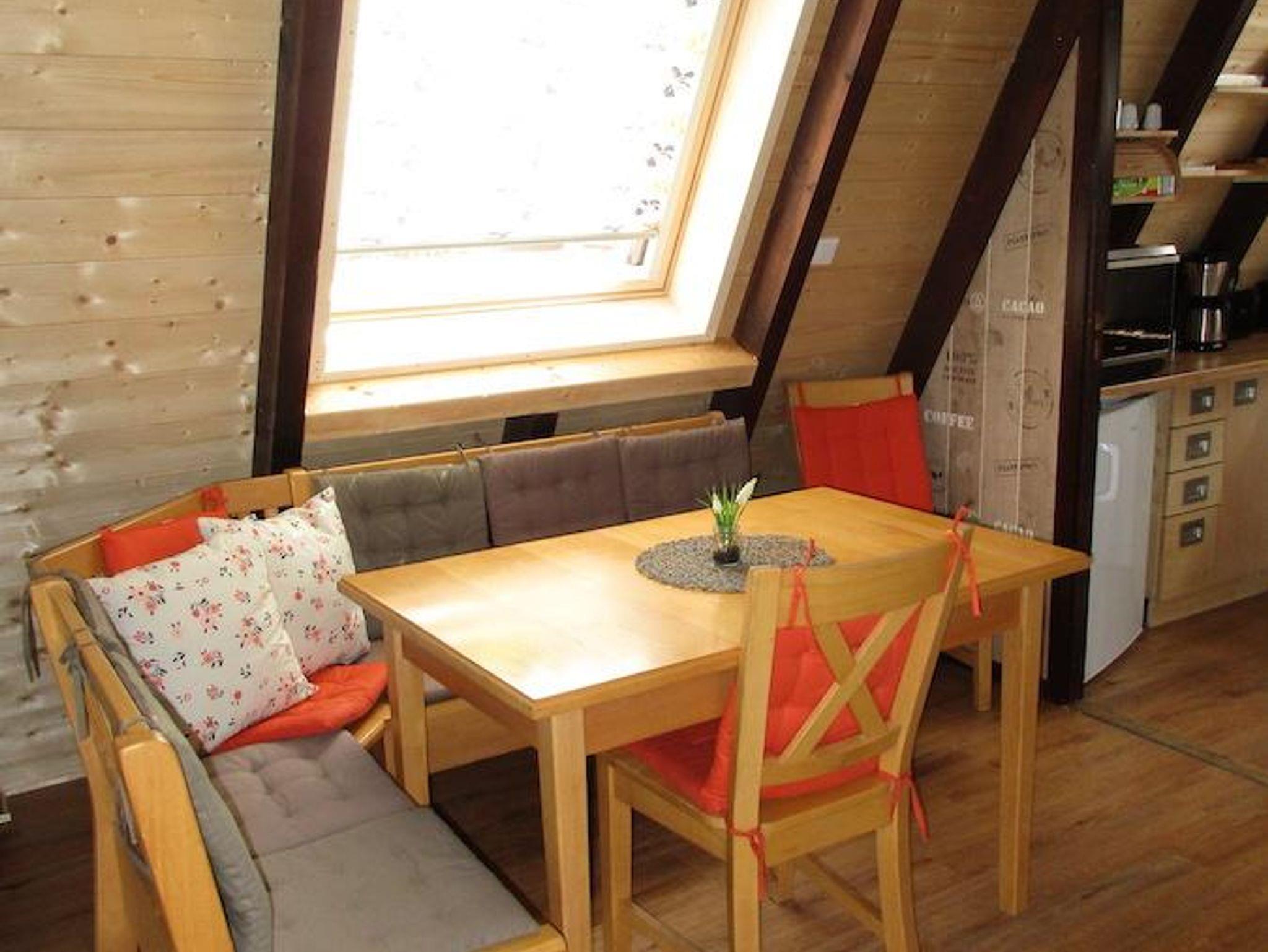 Erholen Sie sich in unserem gemütlichen Nur-Dach-Haus inmitten einer reizvollen Landschaft, mit herrlichem Ausblick, am Waldesrand und doch sehr zentral gelegen. Das Haus bietet auf 53 Quadratmetern alles, was man für einen erholsamen Urlaub braucht: einen gemütlichen Wohn- und Essbereich mit Küchenzeile und einem Bad im Erdgeschoss, sowie bis zu fünf Schlafplätze in zwei getrennten Räumen unter dem Dach (1 Doppelbett, 3 Einzelbetten).