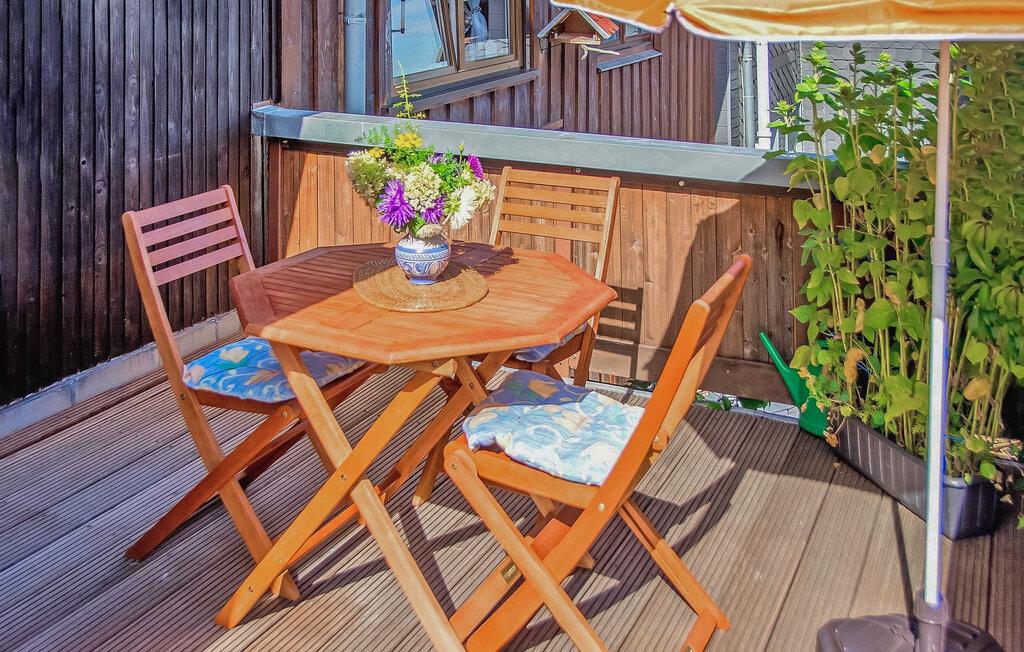 Die beiden komfortabel eingerichteten Nichtraucherwohnungen sind zentral beheizt und verfügen über separate Eingänge. Diese kleine Wohnung verfügt über eine möblierte Sitzecke vor der Tür und liegt im Erdgeschoss eines Nebengebäudes, die große Wohnung DZV441 mit Balkon befindet sich im Obergeschoss des Hauses des Eigentümers.