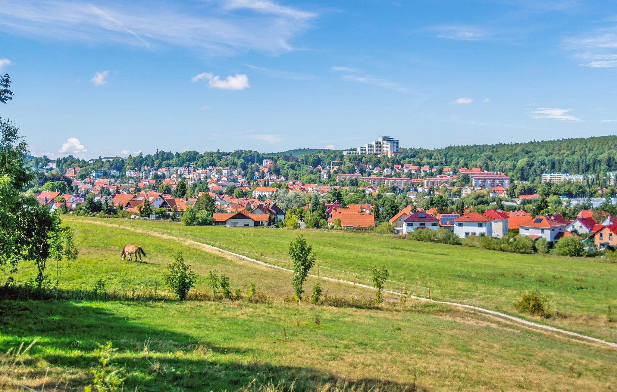 Ruhig und dennoch zentral im Zentrum von Friedrichroda gelegen, befinden sich auf dem ca. 560 Quadratmeter großen, komplett eingezäunten Wohngrundstück des Eigentümers zwei Ferienwohnungen für jeweils bis zu 3 Personen. Einkaufsmöglichkeiten, ein Restaurant, eine Bäckerei und die Tourist-Information finden Sie in unmittelbarer Umgebung, der Bahnhof ist ca. 800 m, das Freibad ca. 1,5 km, mehrere idyllische Seen zum Baden und Wandern sind ca. Die Entfernung zum Skilift beträgt ca. 2,5 km und zum Skilift ca. 6 km entfernt.