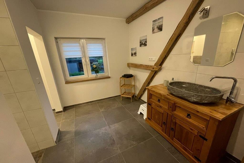 Die Ferienwohnung wurde 2023 neu ausgebaut und ab 23.07.2023 vermietet. Die liebevoll eingerichtete Nichtraucher-Ferienwohnung befindet sich im Obergeschoss auf einem Resthof in Alleinlage. Gemütliche Zimmer bieten Platz für 6 Personen. In der voll ausgestatteten Landhausküche mit Blick auf die umliegenden Felder bringt das Kochen Spaß. Die ins Badezimmer eingebaute Sauna, die 20 m² große Dachterrasse und der 60 m² große, eingezäunte Garten laden zum Spielen, Entspannen und Genießen ein.