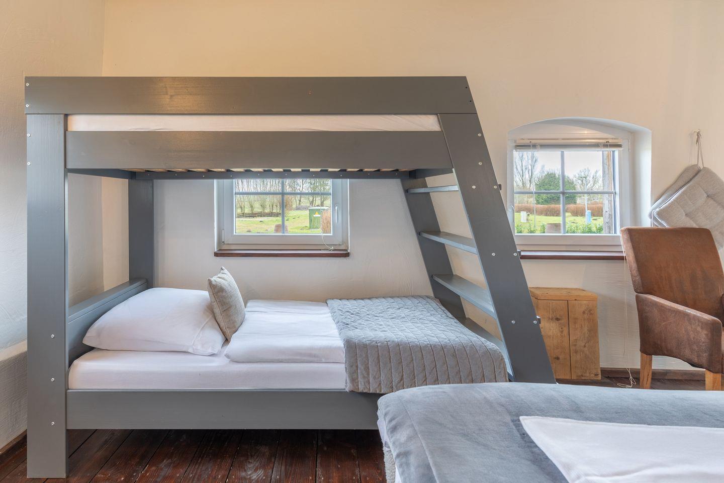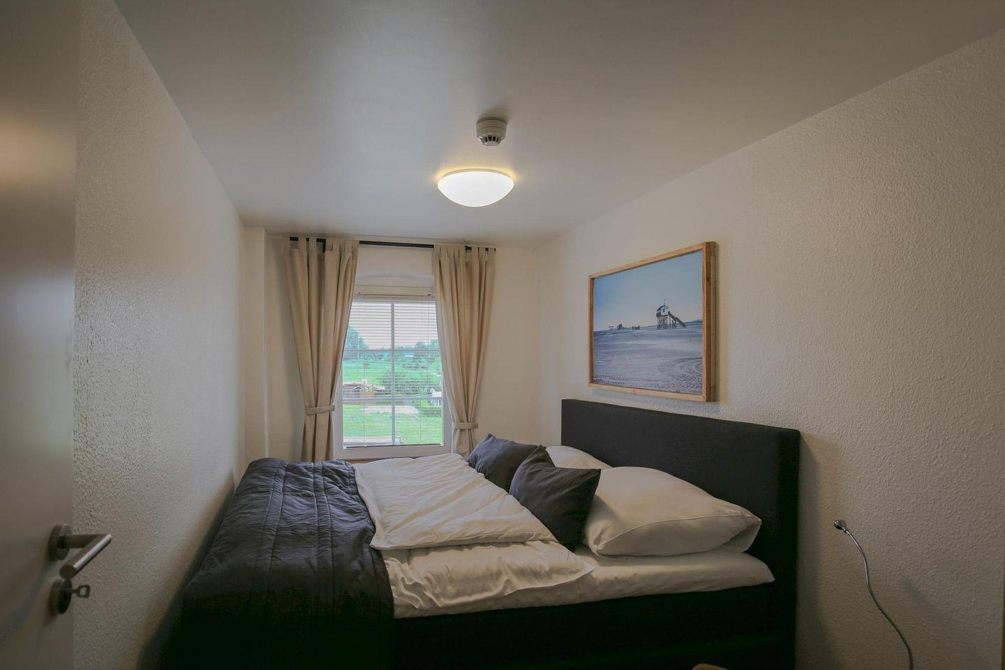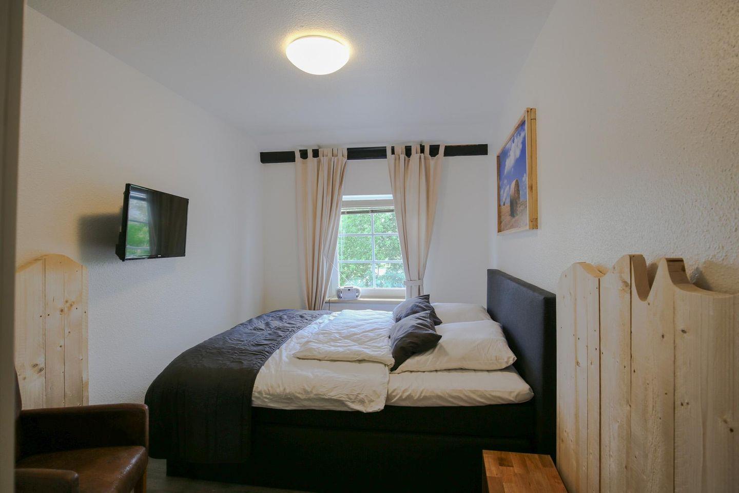 Die Ferienwohnung "Blick to'n water" befindet sich im ersten OG und verfügt über 3 Schlafzimmer, eine Wohnküche mit Sofa und einem Duschbad mit kleinem Balkon. In beiden Ferienwohnungen sind alle Schlafzimmer mit einem TV ausgestattet.